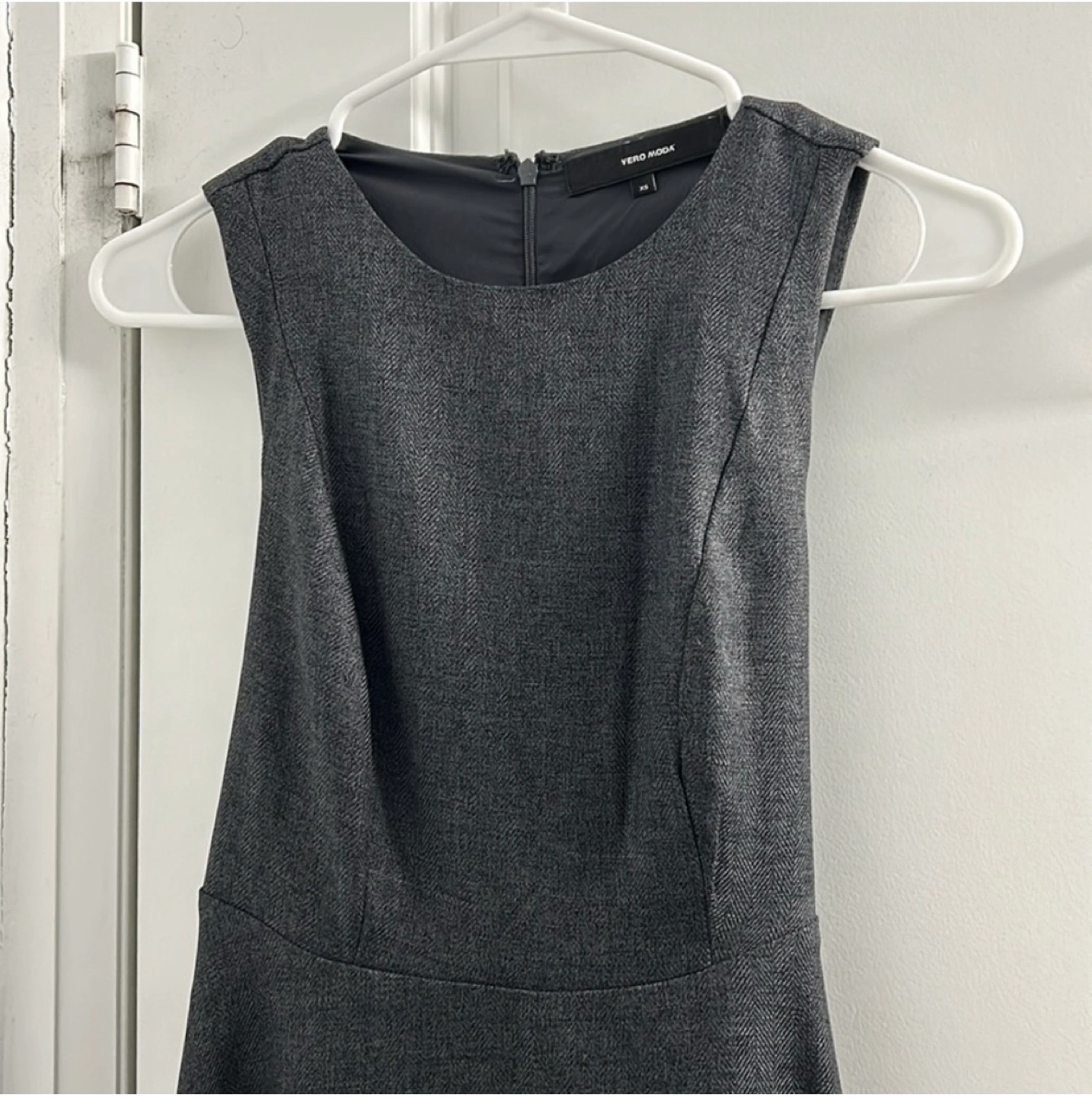 Vero Moda XS dress with tie waist. Only worn once because it’s a little tight around the chest for me as I’m slightly bigger now. It’s a grey houndstooth pattern with lining on the inside. The perfect work dress for a nice summer day.