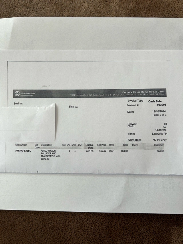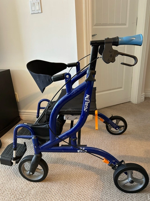 Walker that can also be used as a wheelchair. Easily collapsible and stored. Very little use. Purchased October 2024. Located in Aspen Woods SW.