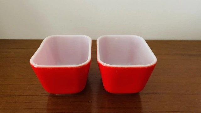Vintage Pyrex Refrigerator Dishes Code: 501-B Solid Primary Red. No chips or any damages. Price is for two.