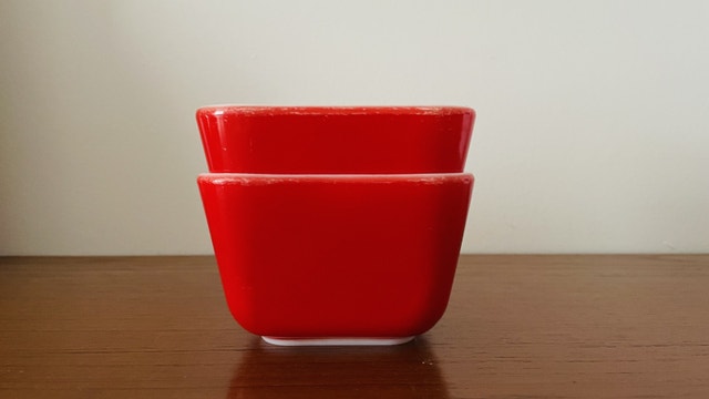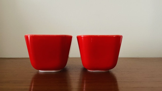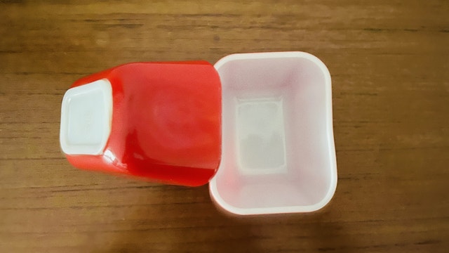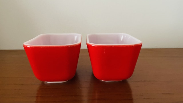 Vintage Pyrex Refrigerator Dishes Code: 501-B Solid Primary Red. No chips or any damages. Price is for two.