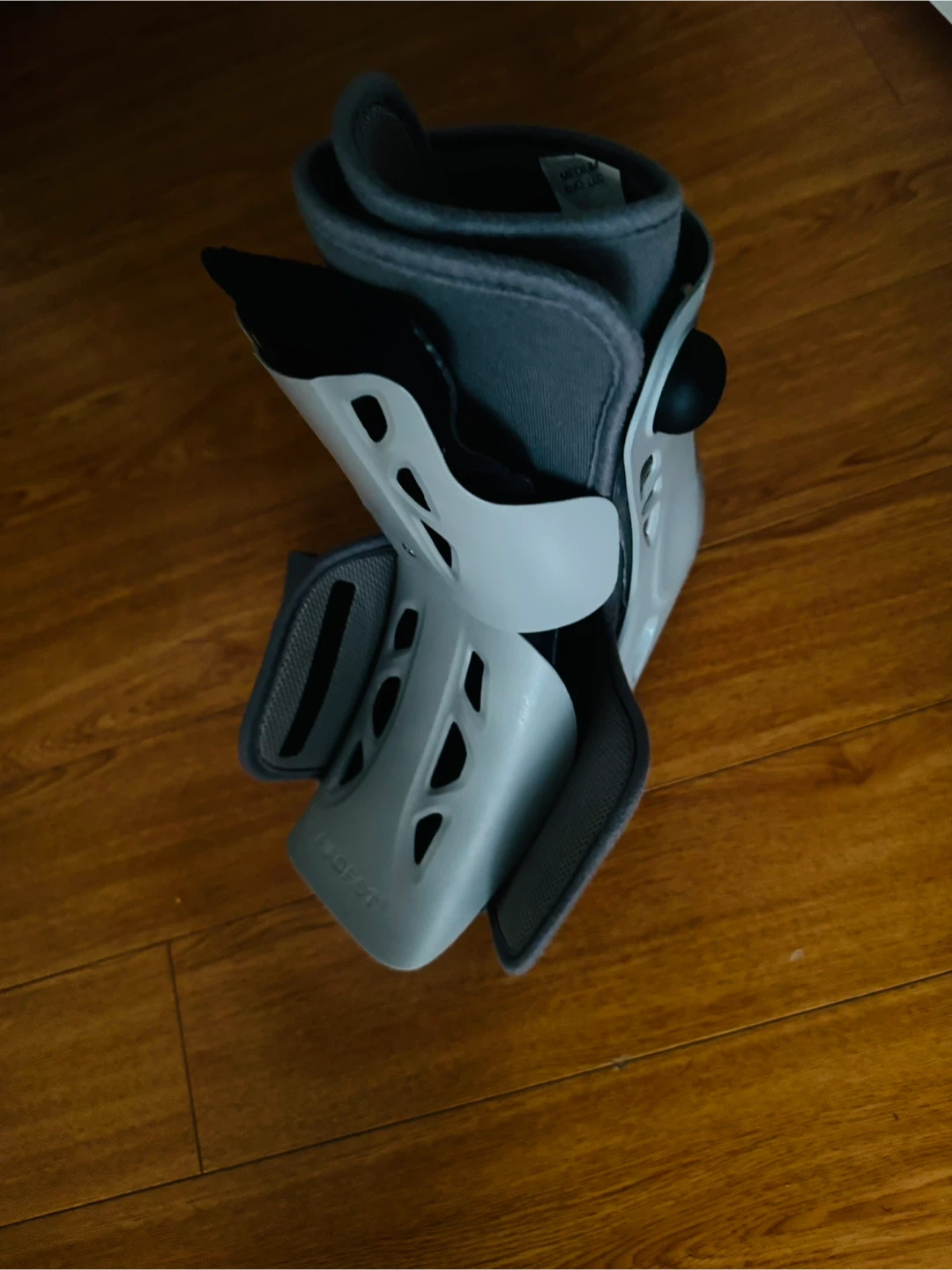 This is a medium-sized Air Walker boot. It offers support and immobilization for ankle and foot injuries. It's designed for comfort and ease of use.