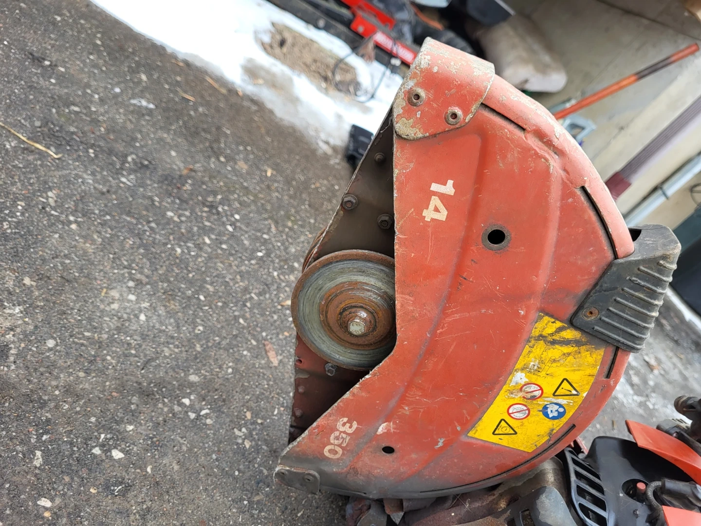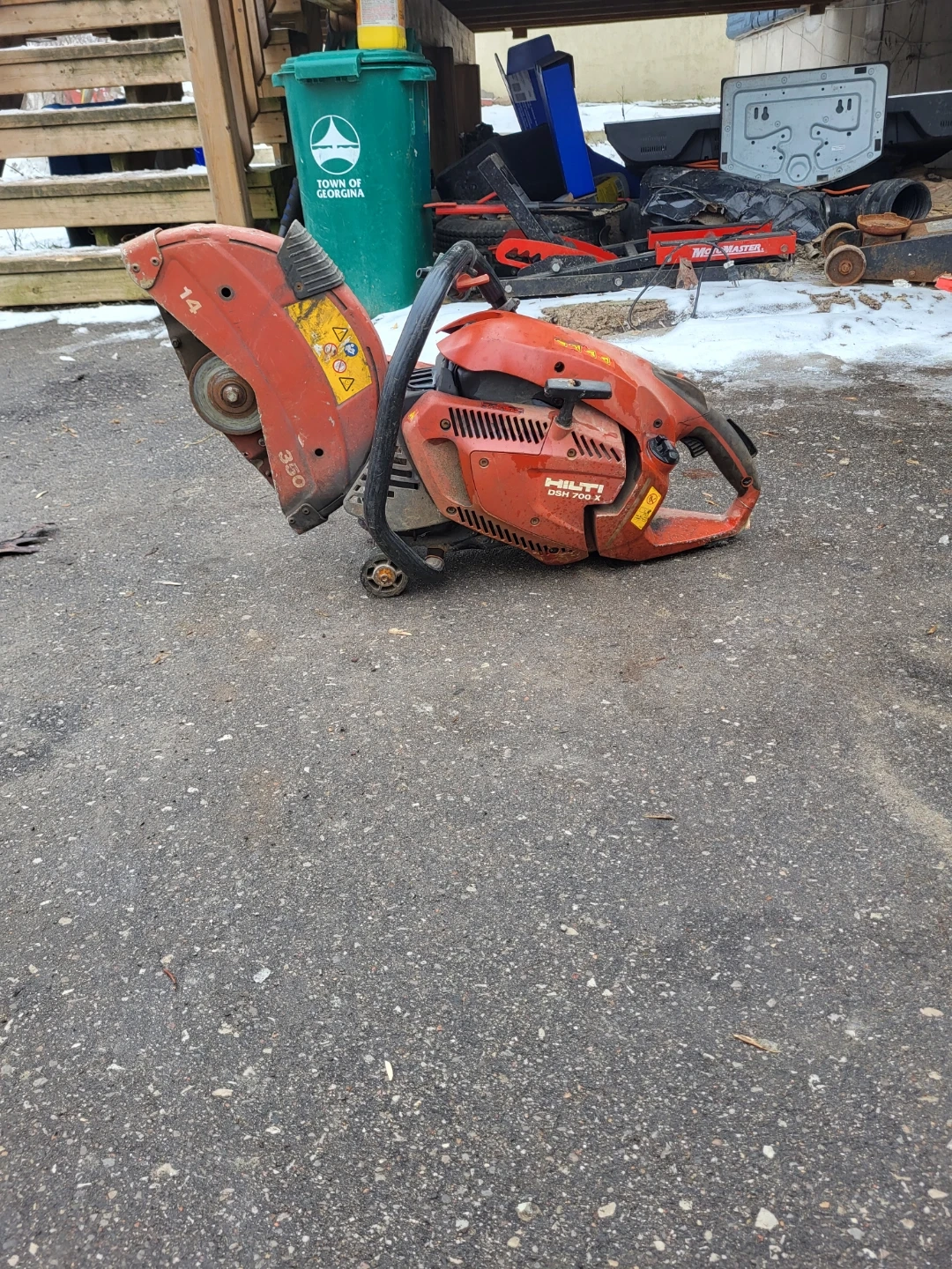 This is a Hilti DSH 700-X cut-off saw. It features a 14-inch blade capacity and a 350mm blade size. This tool is designed for heavy-duty cutting applications.