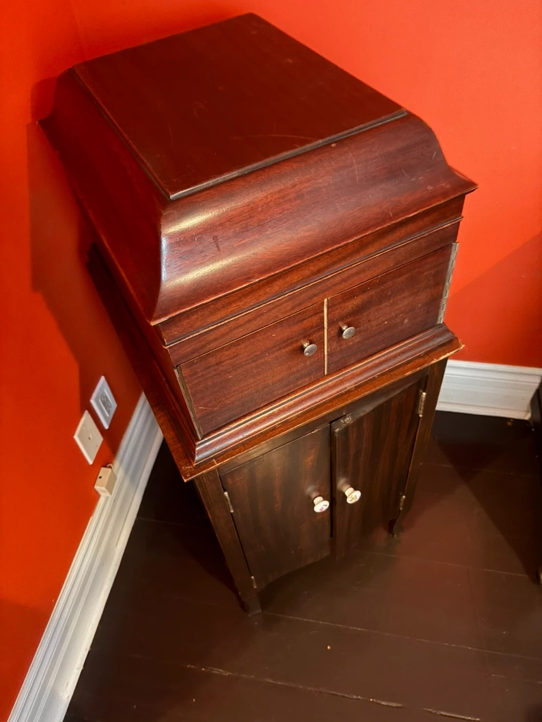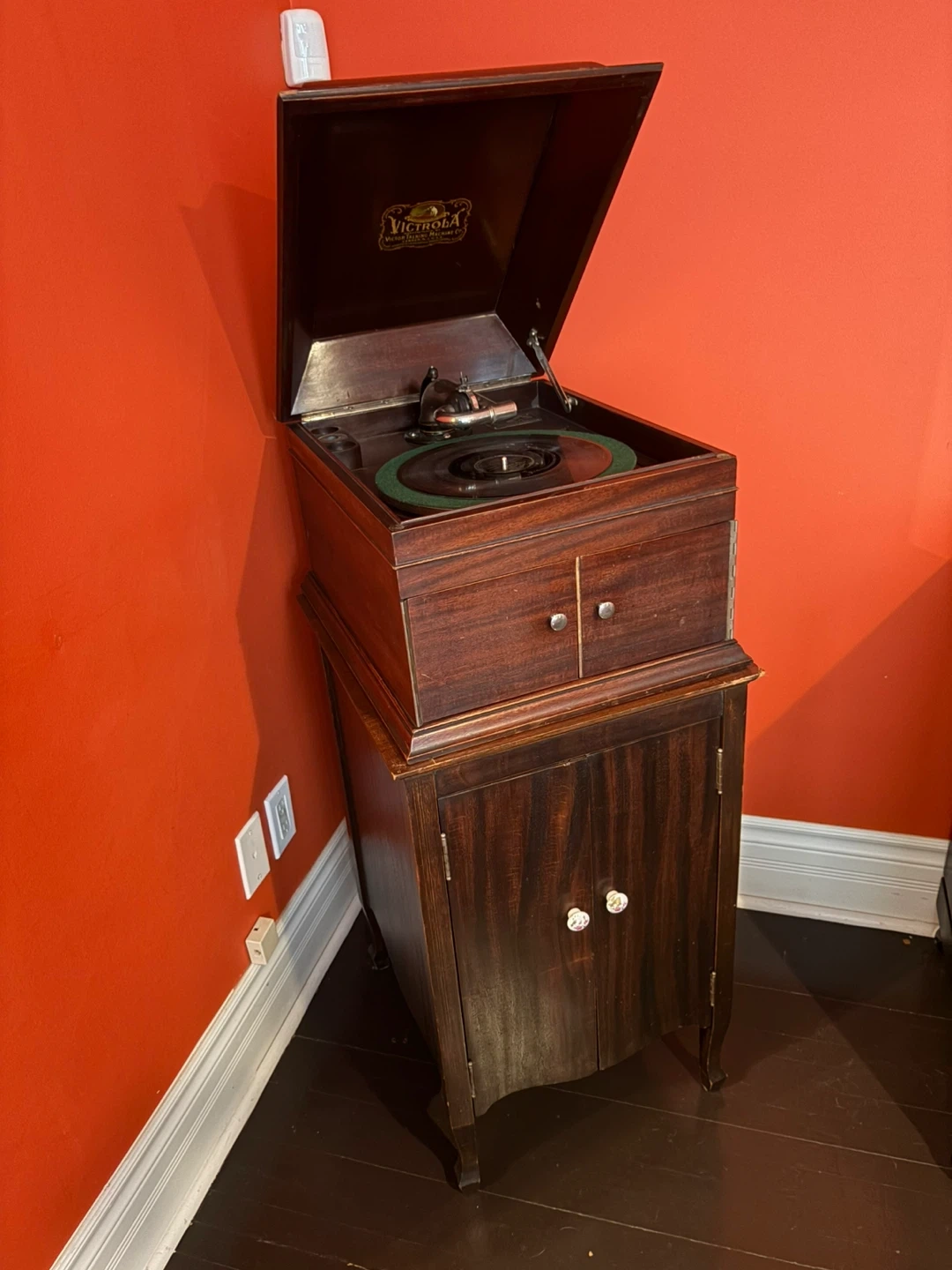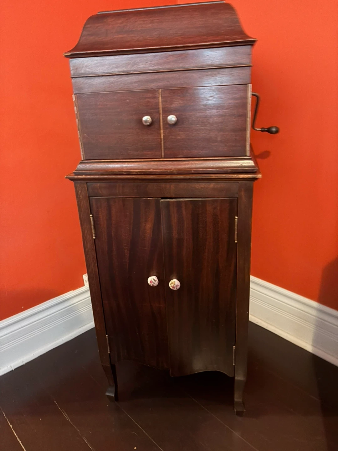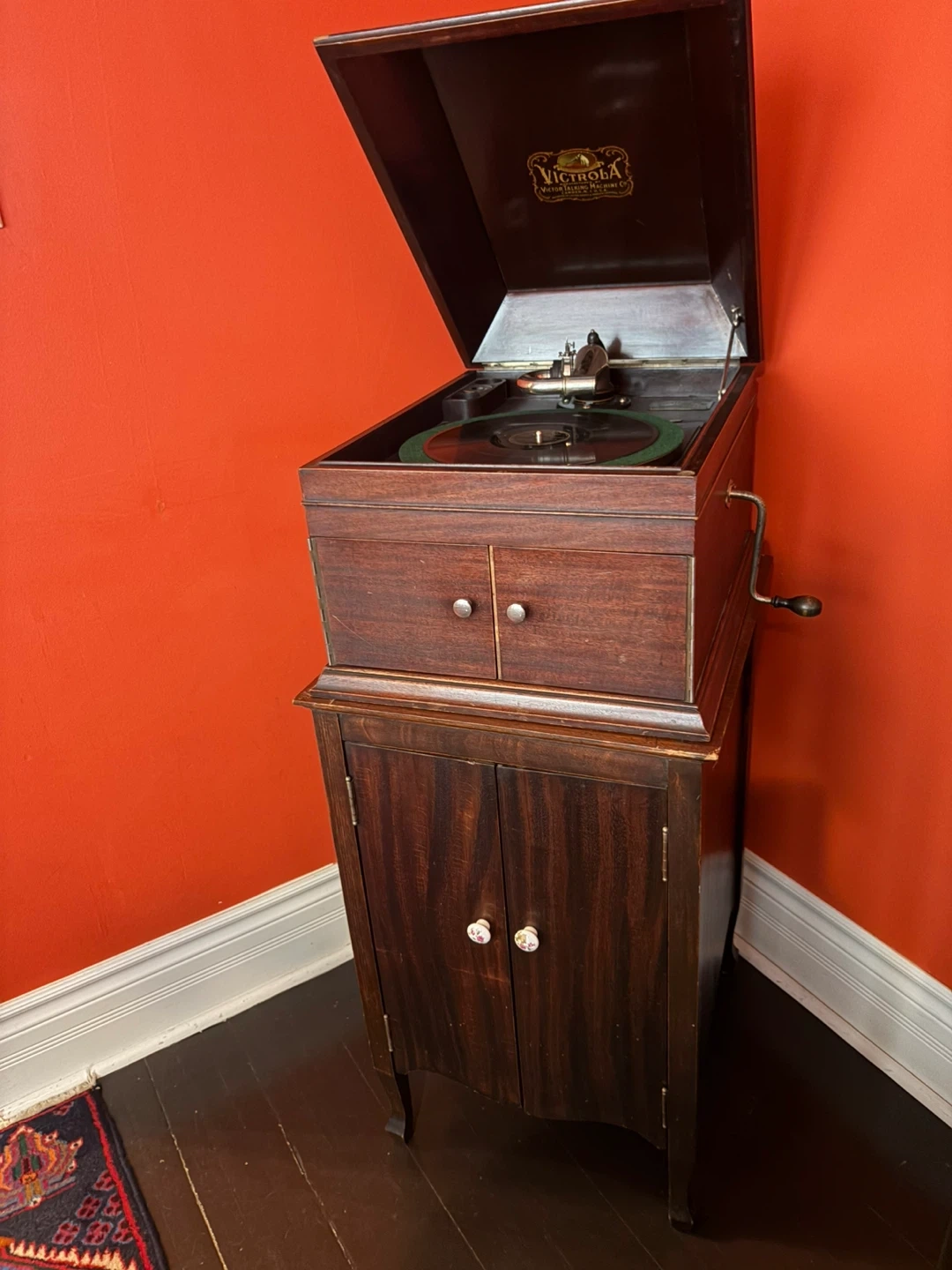 Classic wooden Victrola record player with storage cabinet. Early 1900’s!! Features a hand crank for operation and ample storage for your record collection. A beautiful piece for any music enthusiast!