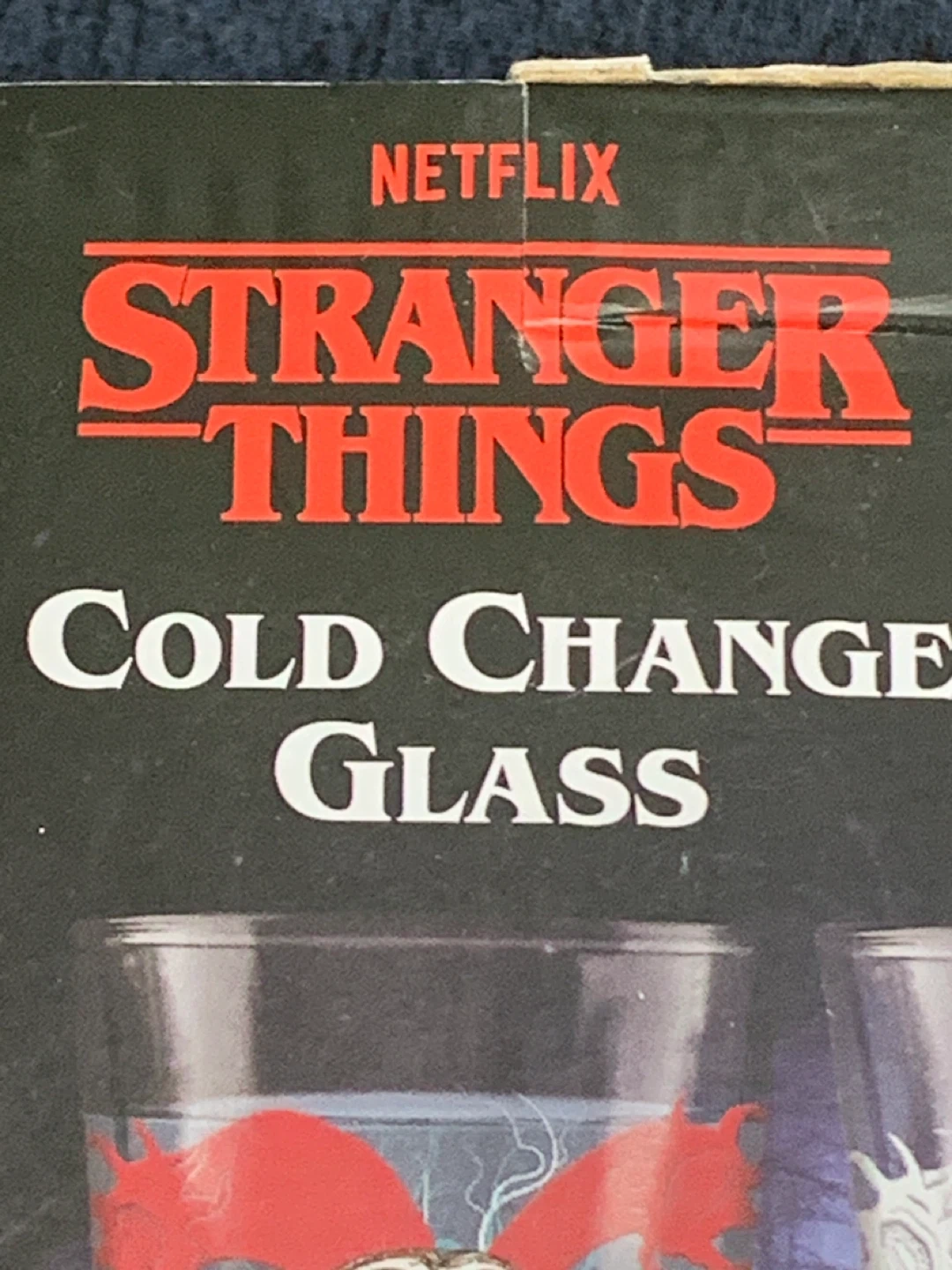 Selling a brand new Stranger Things Cold Change Glass, still in its original box! This glass changes colour when cold liquids are added. A fun item for any Stranger Things fan!