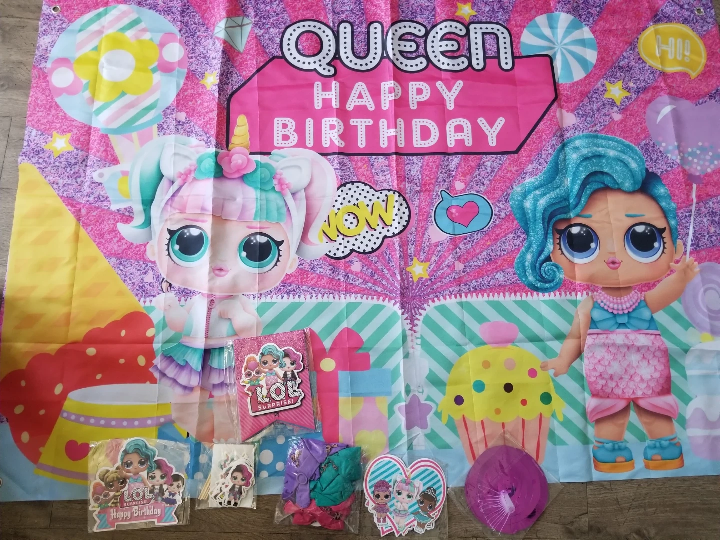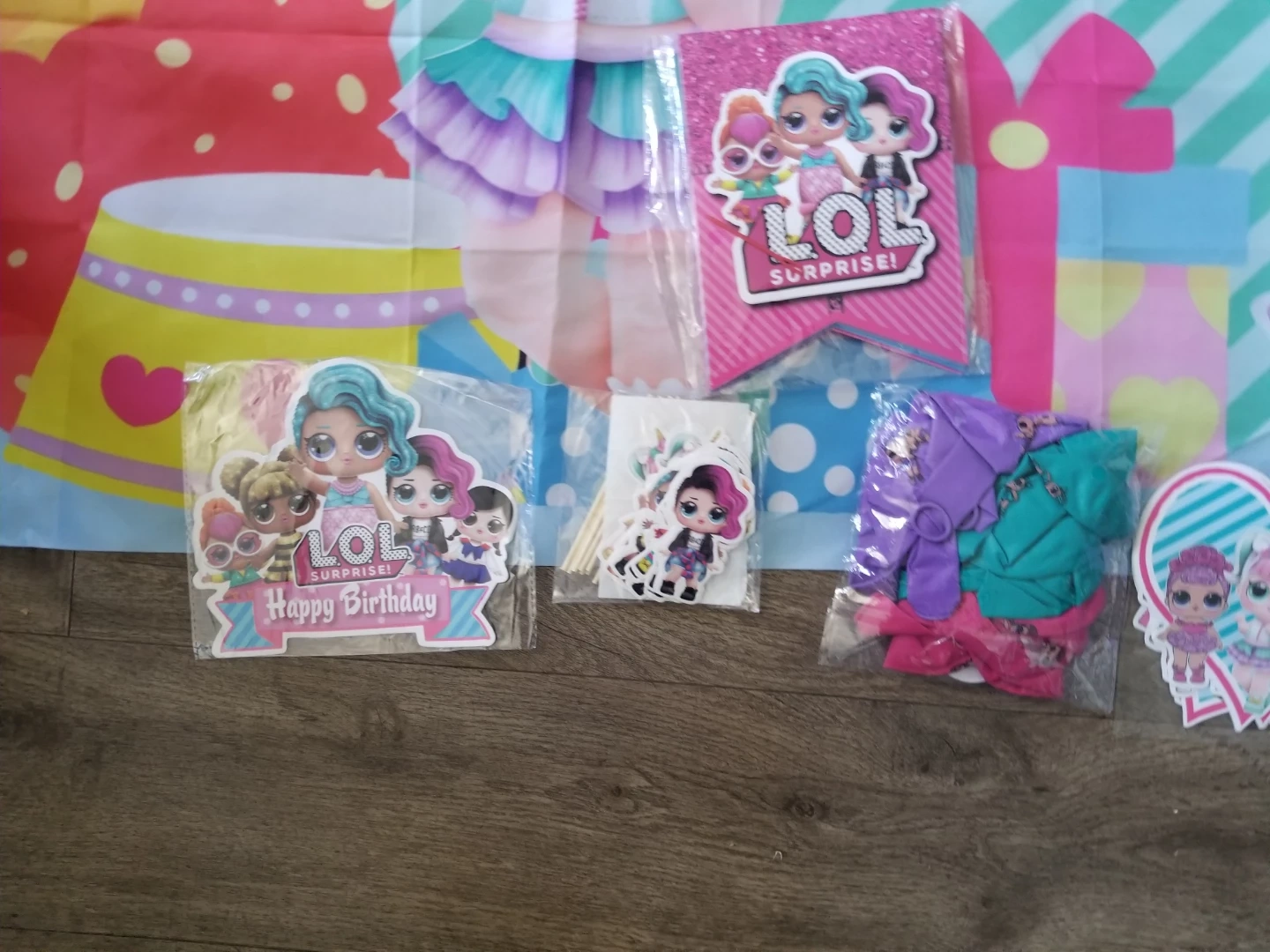Get ready to party with this LOL Surprise birthday decoration set! Includes a banner, backdrop, balloons, cake toppers, and more to make your little one's birthday extra special Banner approximately 59x38