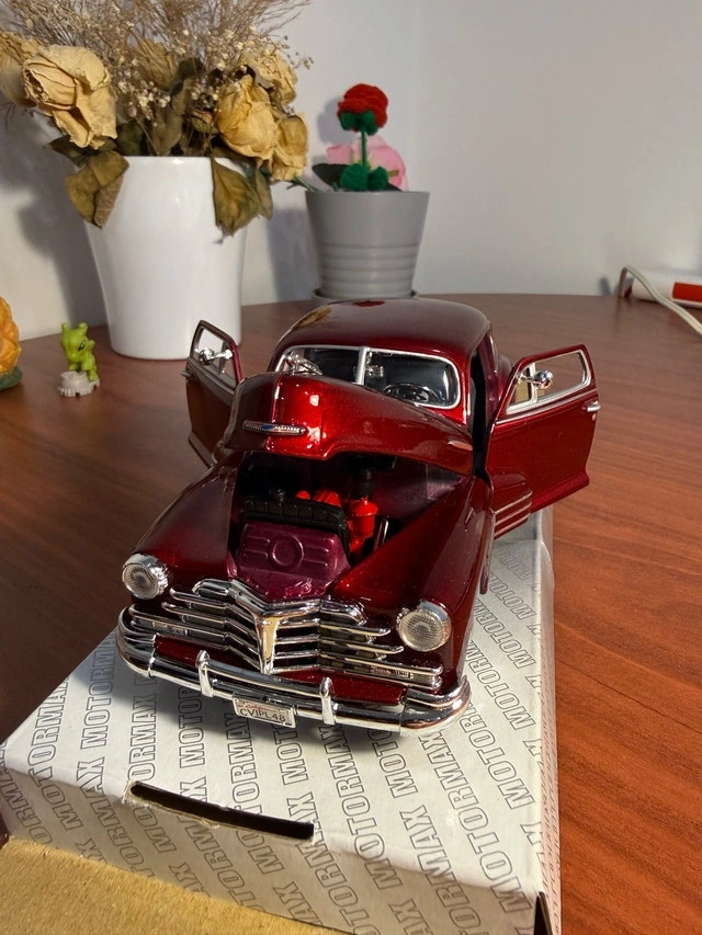 Beautiful 1:24 scale diecast model of the 1948 Chevrolet Fleetline by Motor Max. Finished in a stunning deep metallic red with chrome detailing, this model captures the classic curves of the original car perfectly. Features: • Opening hood, doors, and trunk • Detailed interior and engine bay • Chrome bumpers and trim • Whitewall tires • High-quality diecast metal body • Comes with original box. Excellent condition. Displayed only. No major scratches or damage. Box included. Perfect for collectors, classic car enthusiasts, or display decor. Pickup near Mavis & Eglinton, Mississauga. Message me if you have any questions!