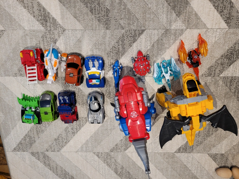 Transformers enjoyed by one kid. The big ones turn into dinosaurs