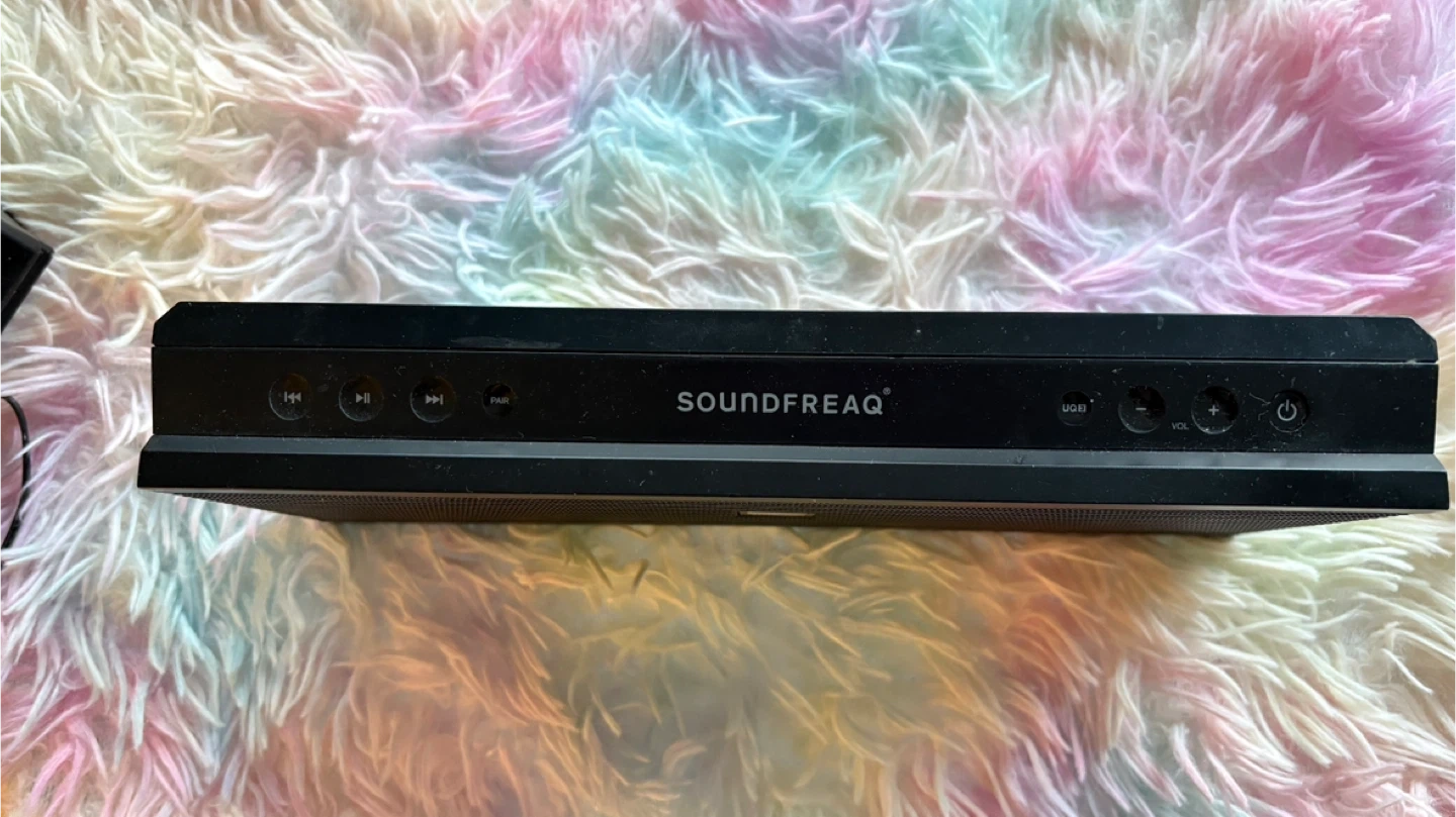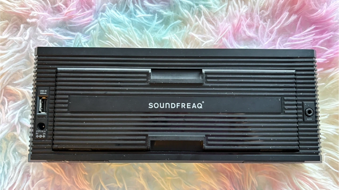 This is the Soundfreaq SFD-04 Sound Kick Audio System. It features AC adapter input with DC 5V 2A output. It also has a USB port and AUX-in for versatile connectivity.