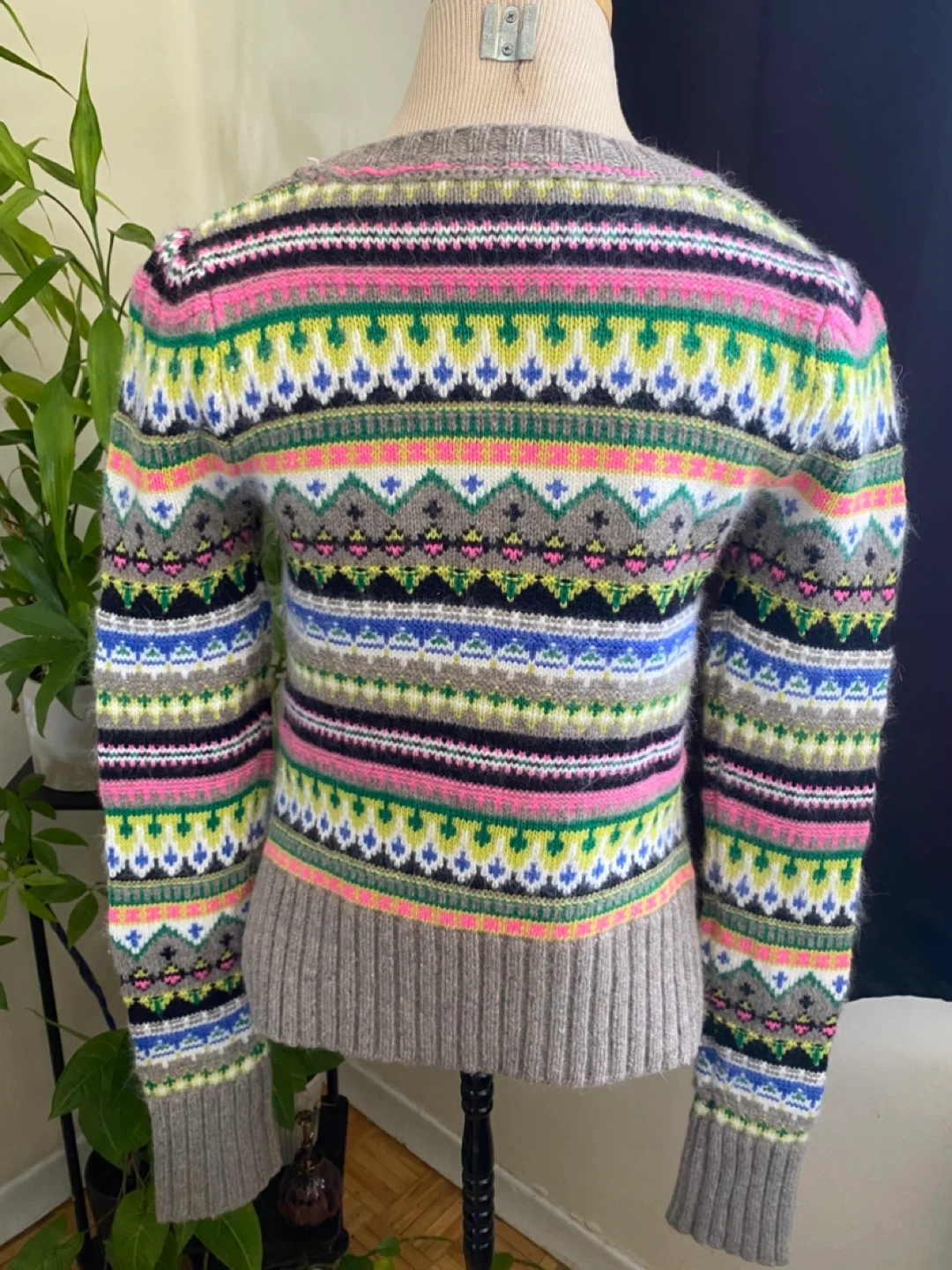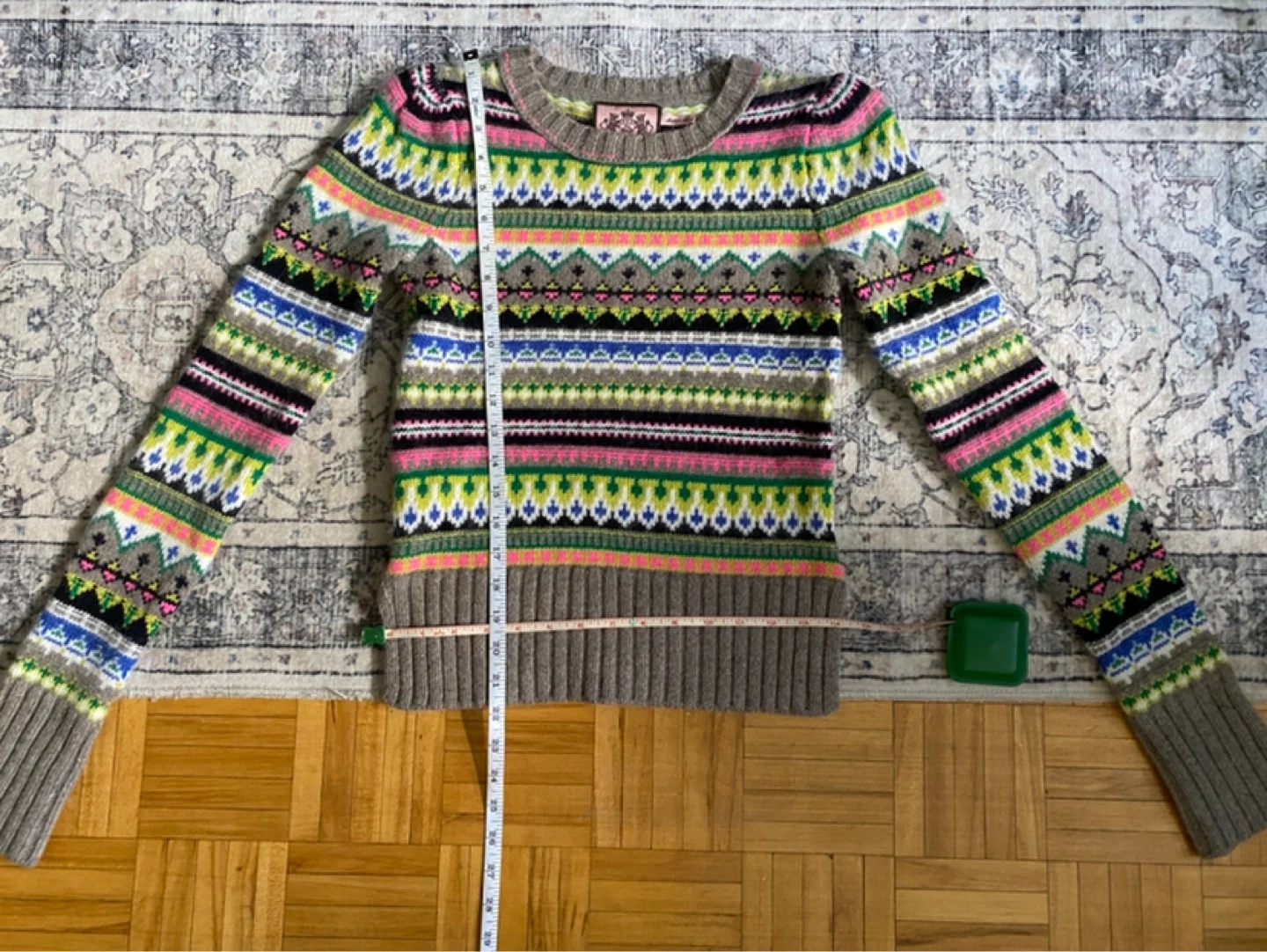 This Juicy Couture sweater features a colourful fair isle pattern. Its knit construction makes it a cosy option for cooler weather.
