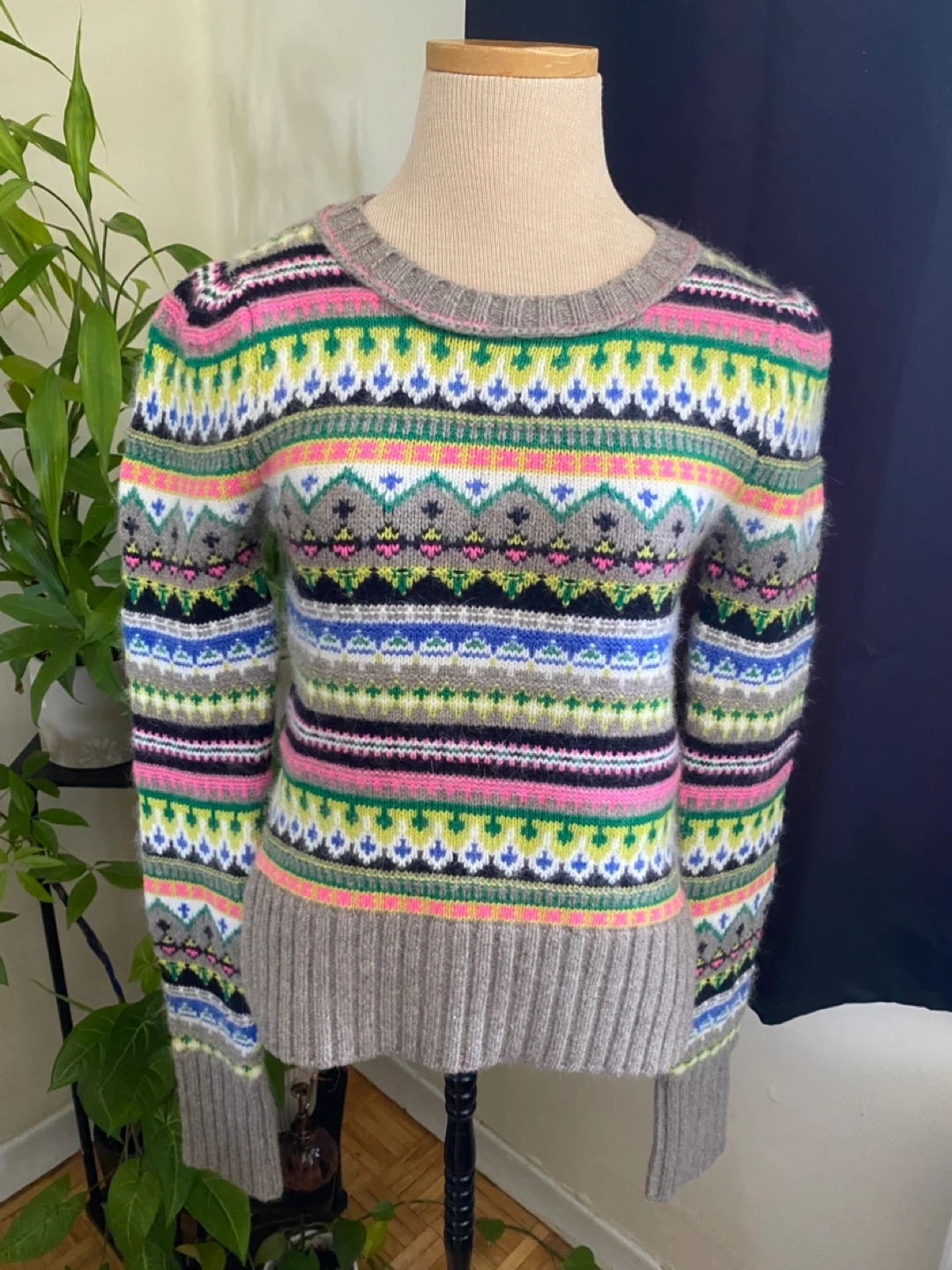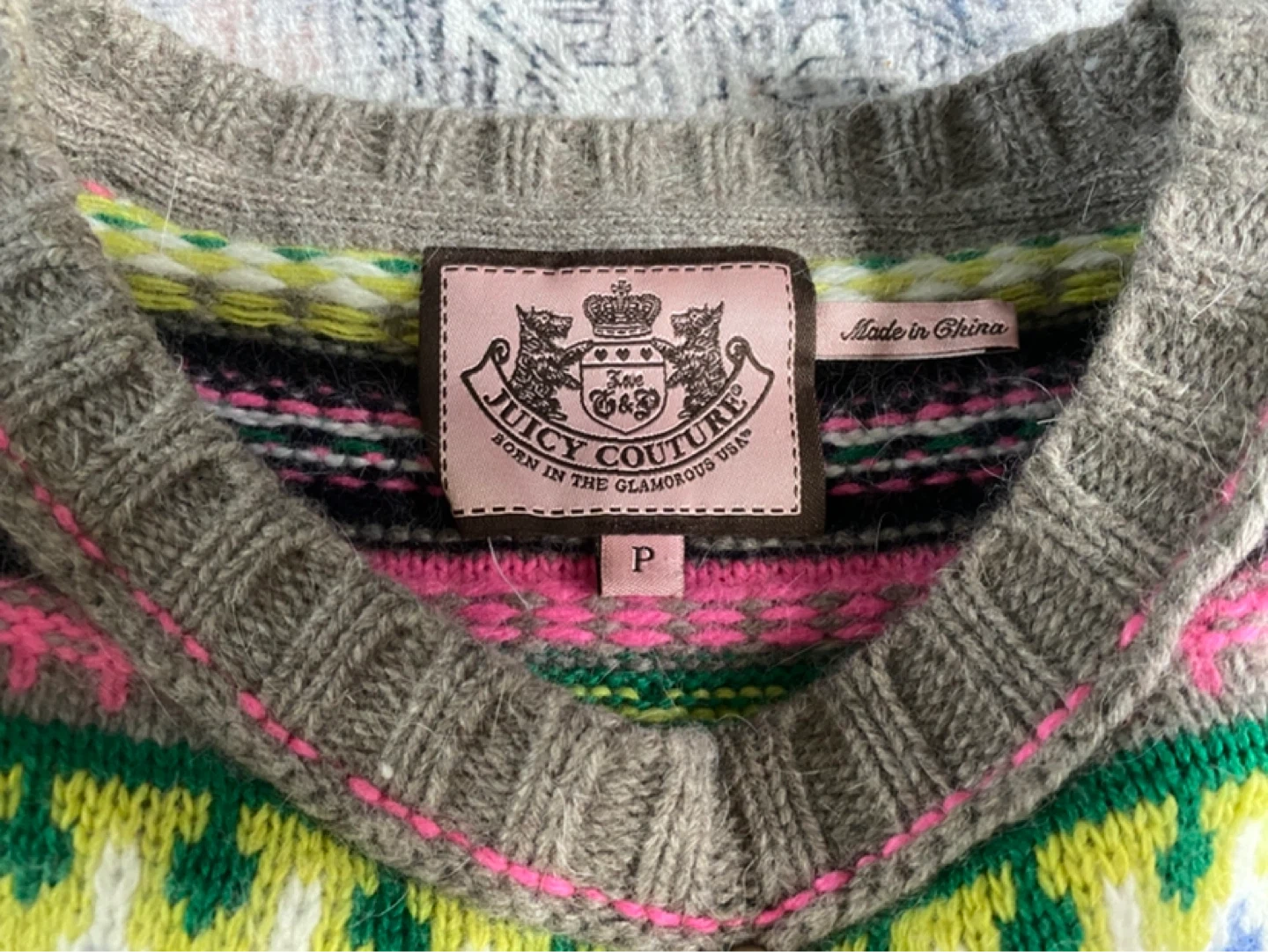 This Juicy Couture sweater features a colourful fair isle pattern. Its knit construction makes it a cosy option for cooler weather.