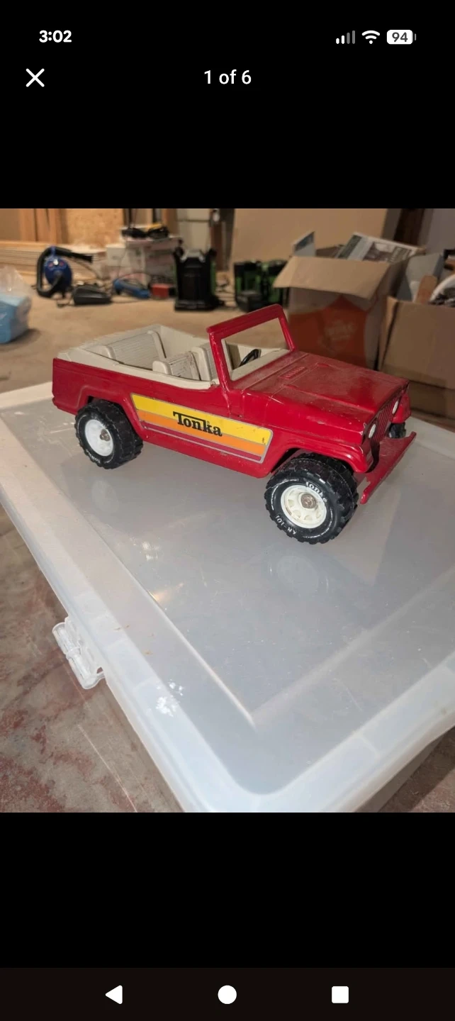 Buy & SellTonka JeepsterTonka Jeepster$100$100 obo, found this Tonka Jeepster downstairs at my parents house. Did some research and saw some go for 50 and others over 100 so I started at $100WHERE TO MEETMy HomeView MapSELLERChrisAldershot150 reviews0 chats·0 favorites·3 viewsSEND CHAT TO SELLERHi Chris! I’m interested in your listing.Hi Chris! I’m interested in your listing.Get the Karrot app to chatSign In to chat