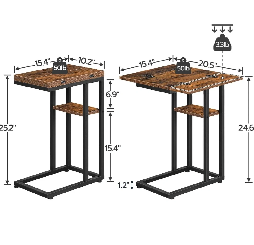 This handy c-table features a rustic wood-look top and a metal frame. It has a lower shelf for extra storage. It's great for placing your laptop or snacks next to the couch.