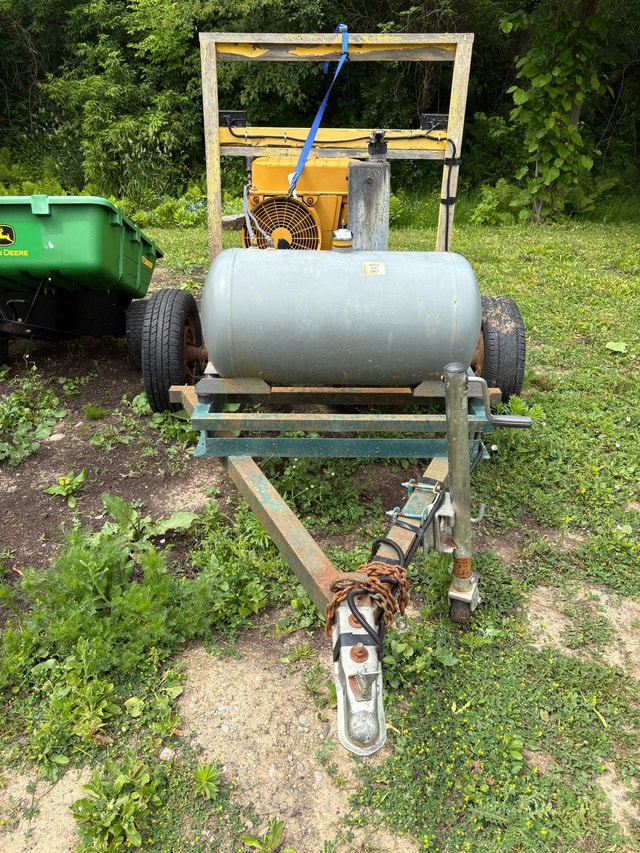This is a used diesel generator mounted on a trailer, perfect for providing reliable power wherever you need it. While it's been used, it's in good working condition and ready to get back to work. The generator appears to be a Hatz diesel. It features multiple outlets for connecting various devices. Specifications: Type: Diesel Generator Mount: Trailer-mounted Condition: Used. Let me know if you're interested!