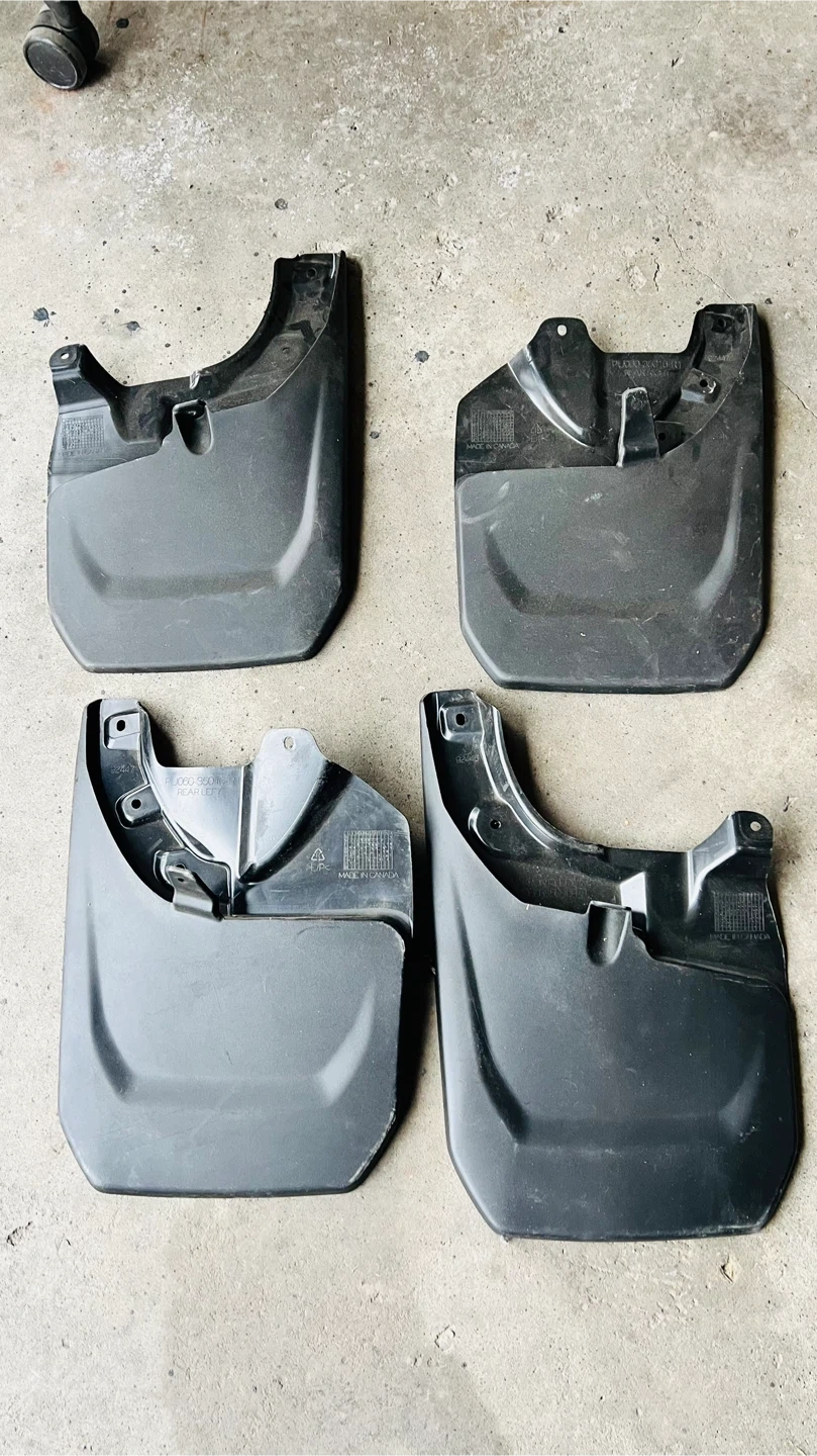 Set of four black mud flaps for rear left and right. Part number PU060-35016-R1 is visible on one of the flaps. These help protect your vehicle from mud and debris.