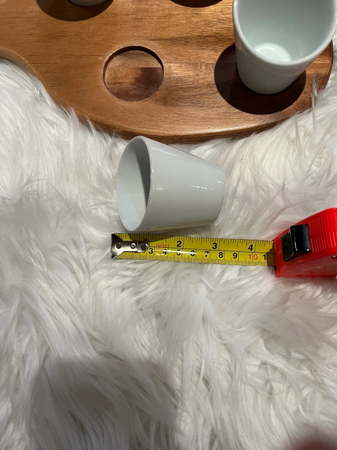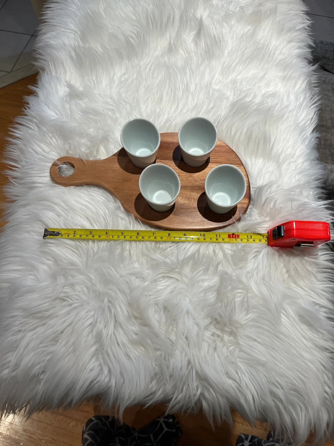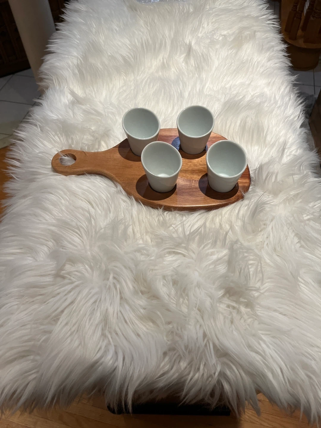 Wooden Serving Board with Ceramic Cups