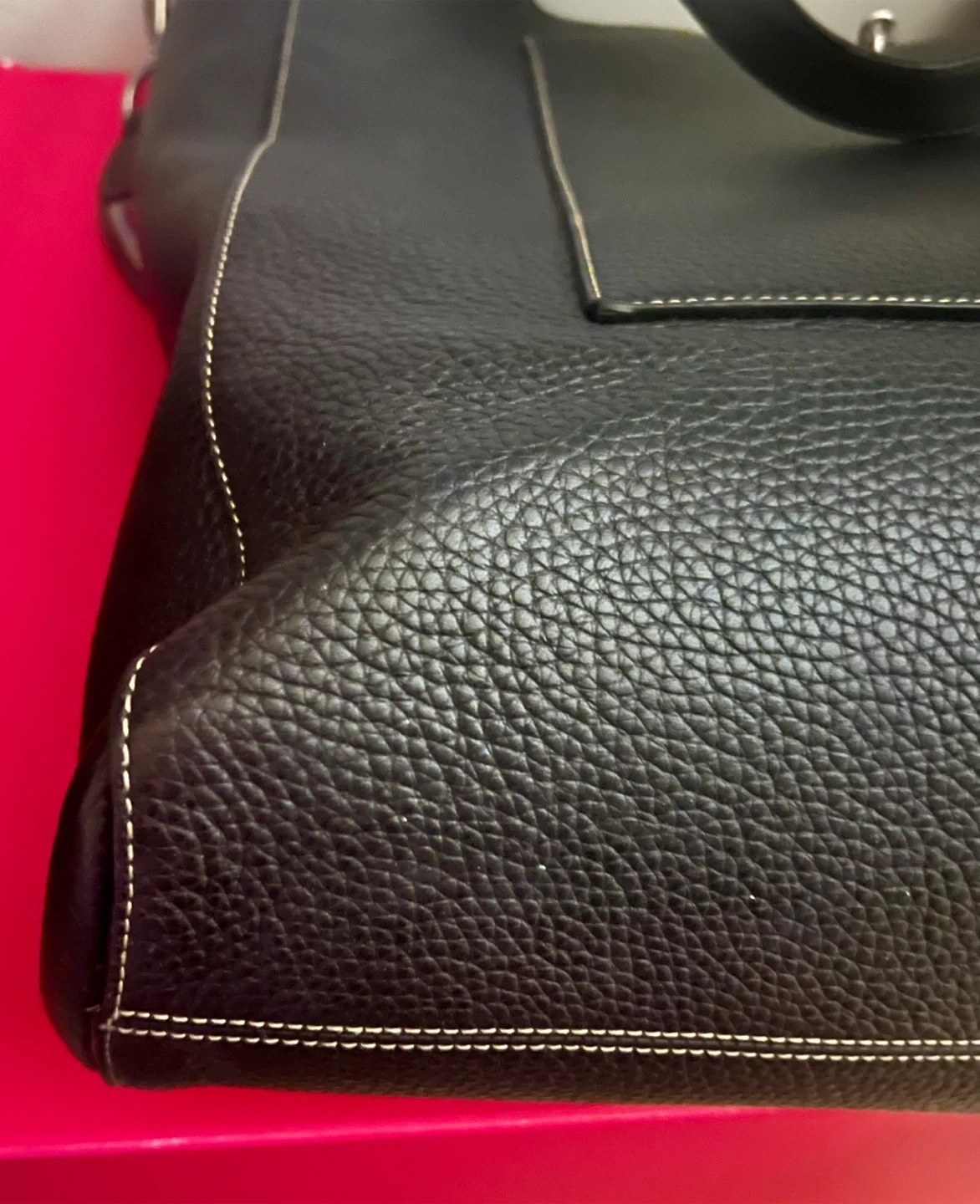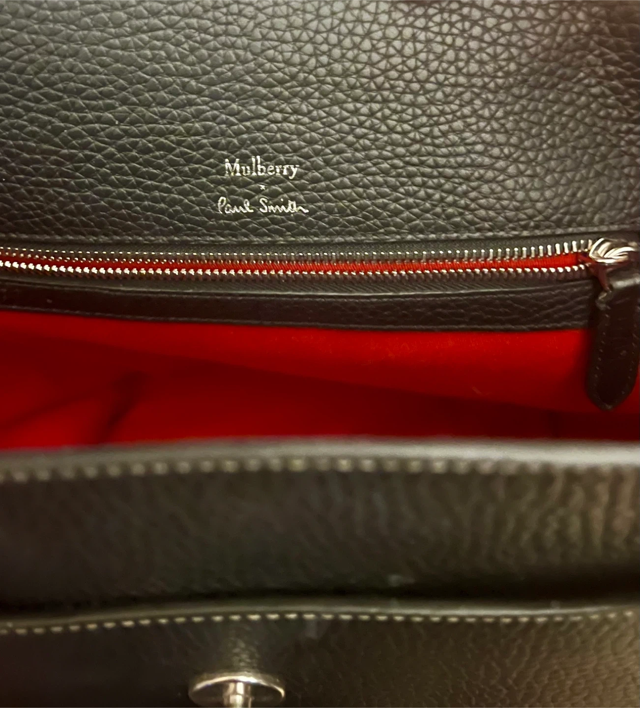 Condition: the bag is in very good used condition, only used occasionally as my office tote. Exterior leather is in excellent condition, no marks, stains, discolouration (see photos). The front clasp has superficial scratches due to use. The handles are in great condition; I mostly used the shoulder strap. The interior is very clean, aside from one ink smudge/stain (see photo). I have misplaced the dust cover while moving. Incl. is the Paul Smith x Mulberry Authenticity card. However, the bag will be authenticated through PoshMark. And I have my digital order history from SSENSE.