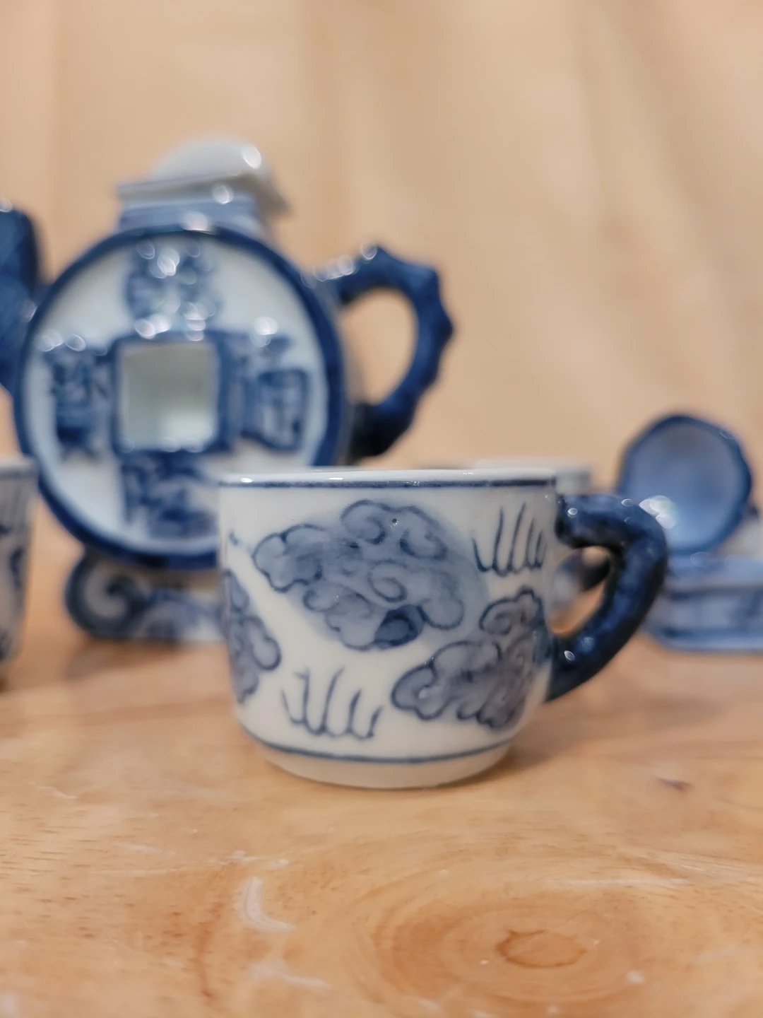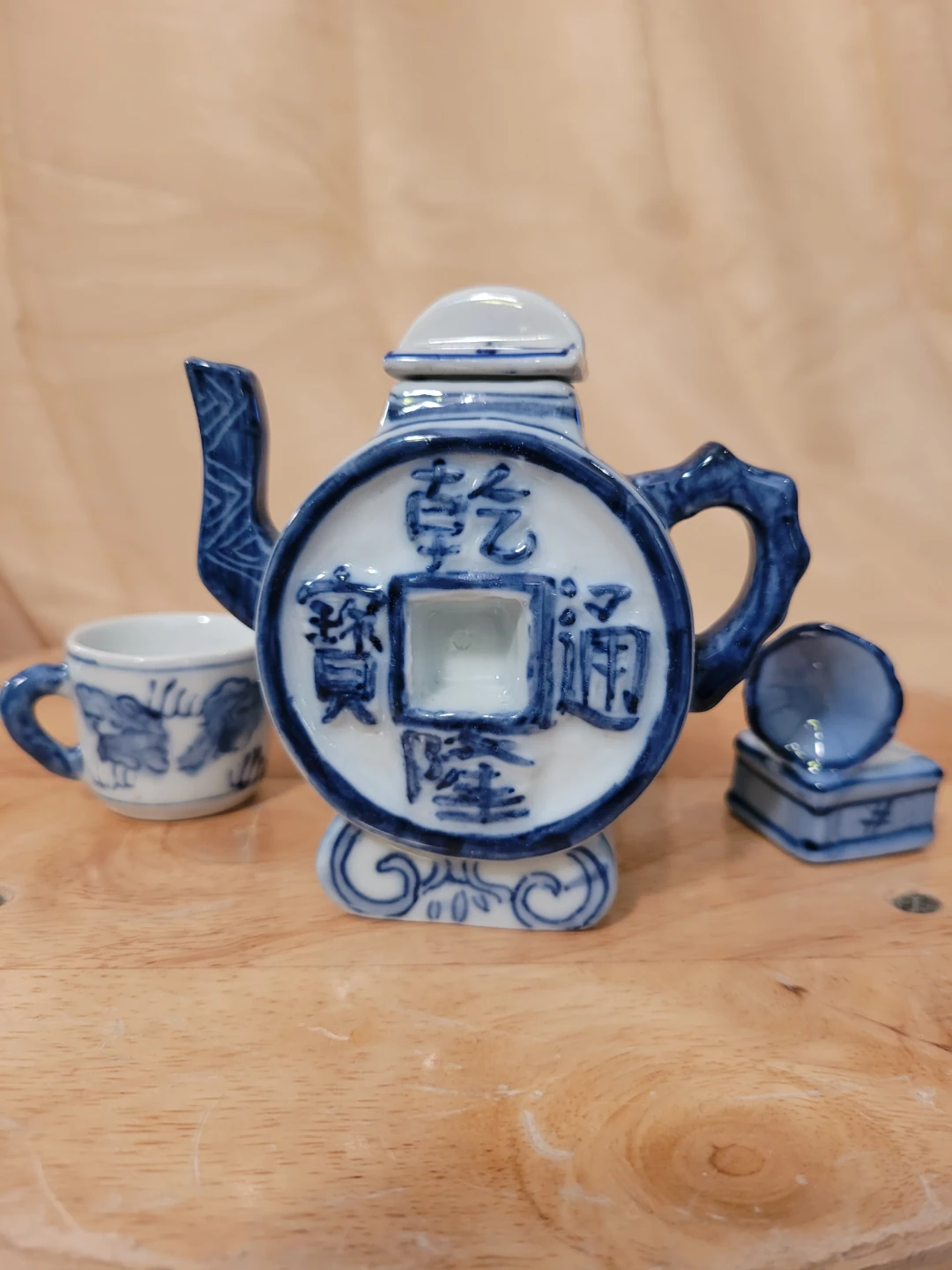 Miniature Blue and White Teapot Set with Gramophone