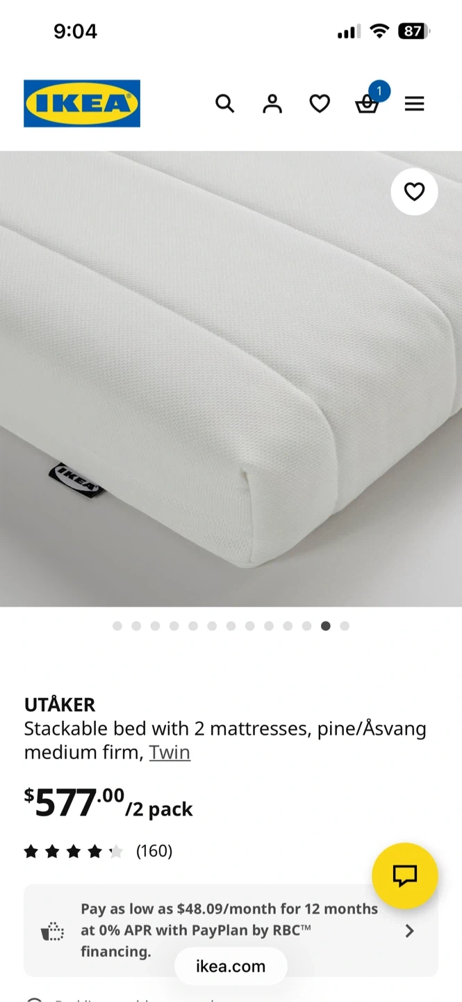 IKEA UTÅKER Stackable Bed Frame with 2 Åsvang Mattresses - Twin