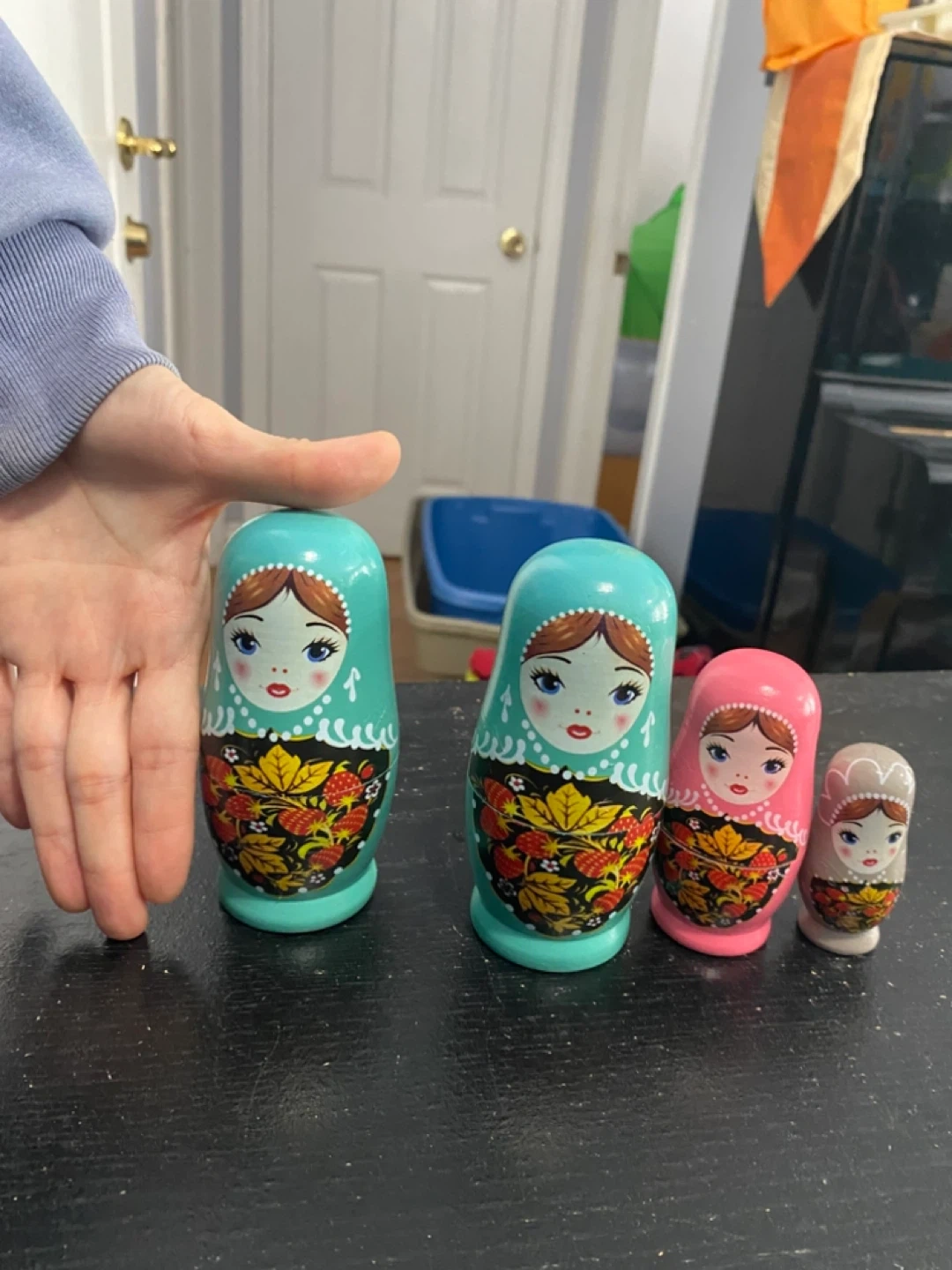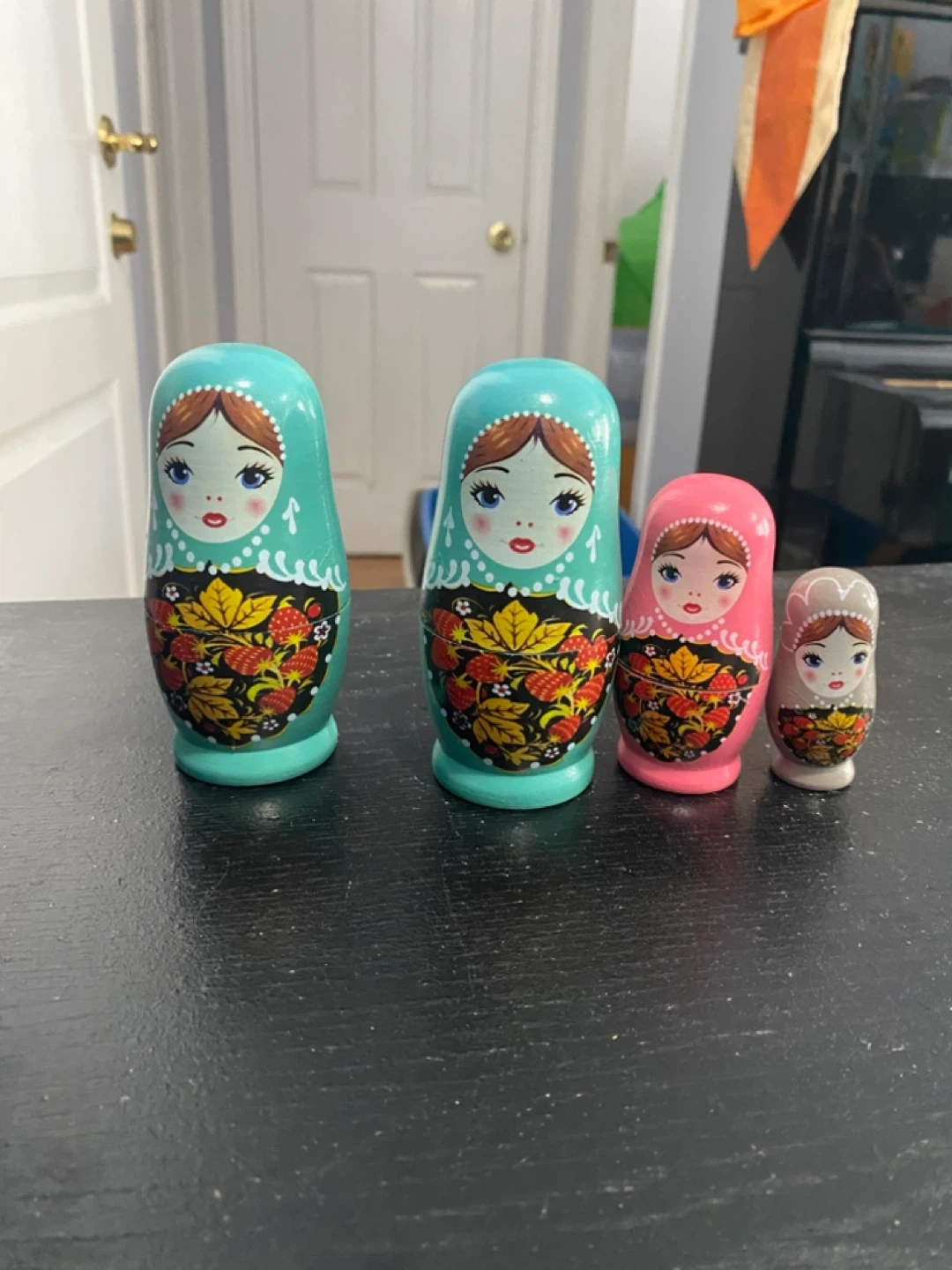 They're in great shape and ready to add a touch of charm to your home. The dolls nest inside each other, making them a fun and unique decorative item