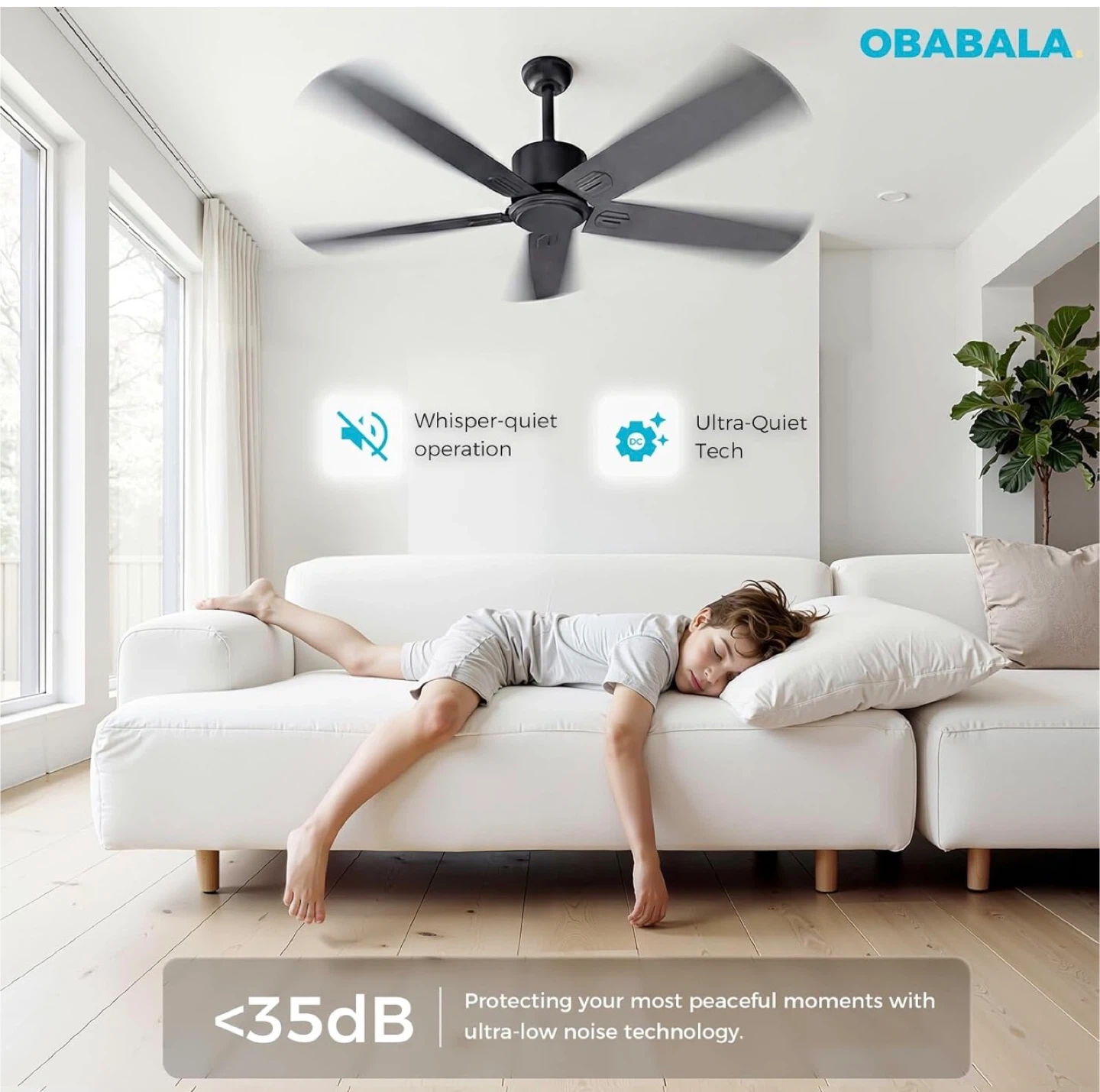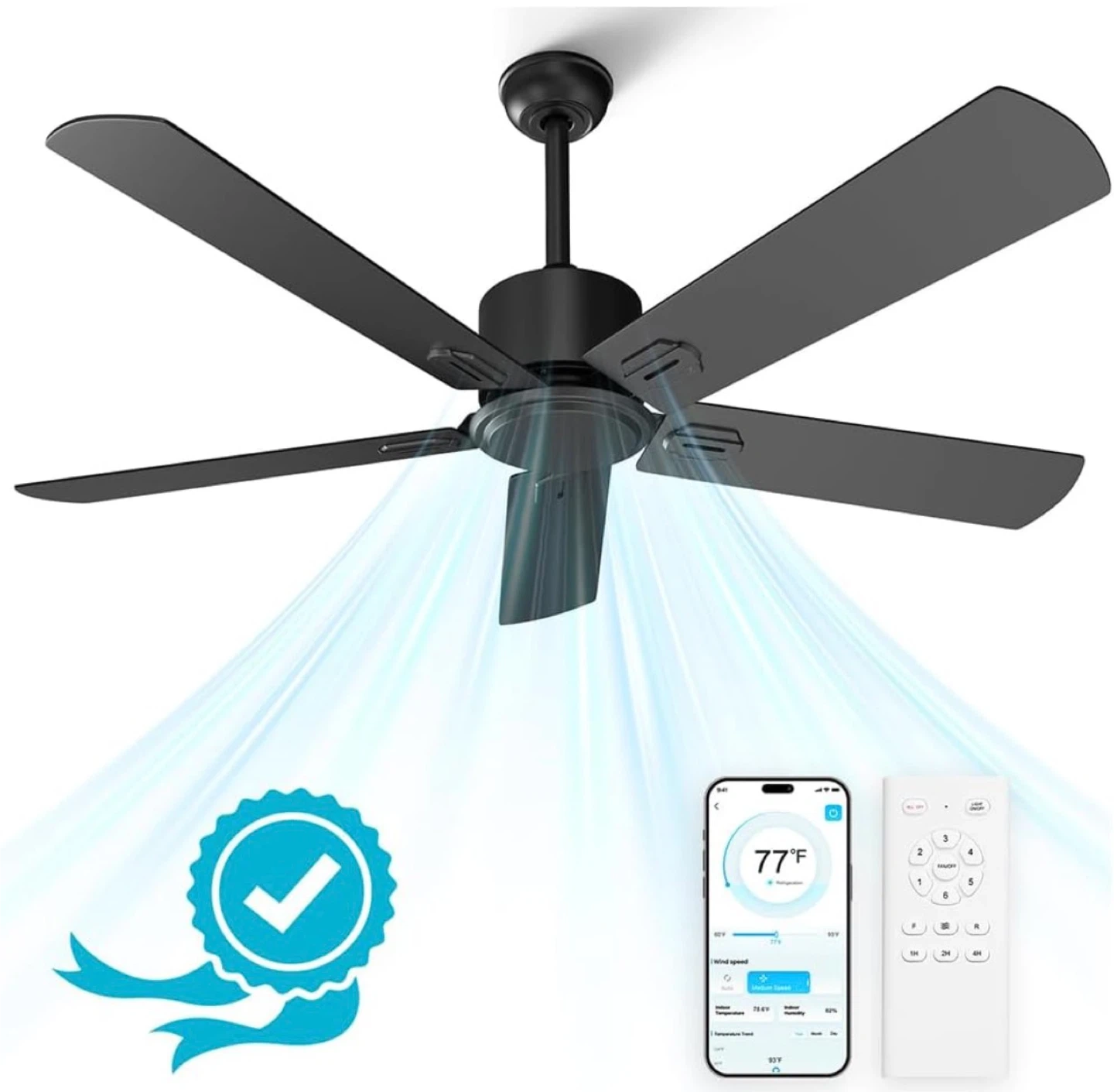 52" Black Ceiling Fan with Remote & App Control