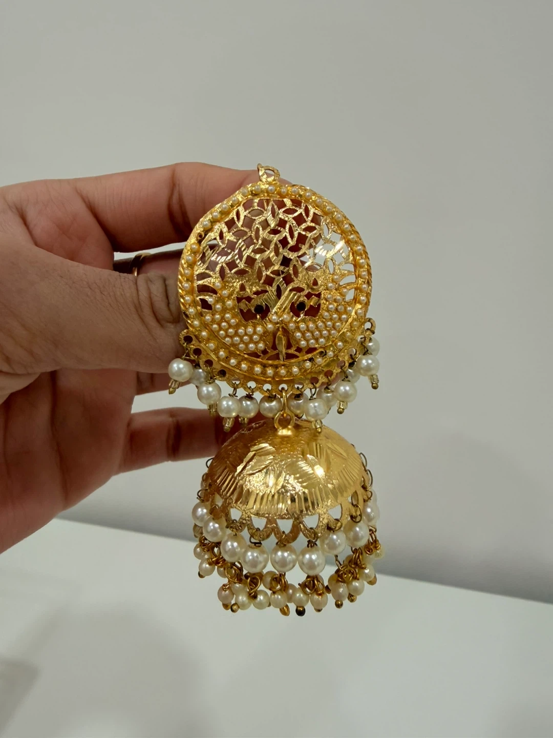 Gold Tone Pearl Jhumka Earrings and Choker Necklace Set