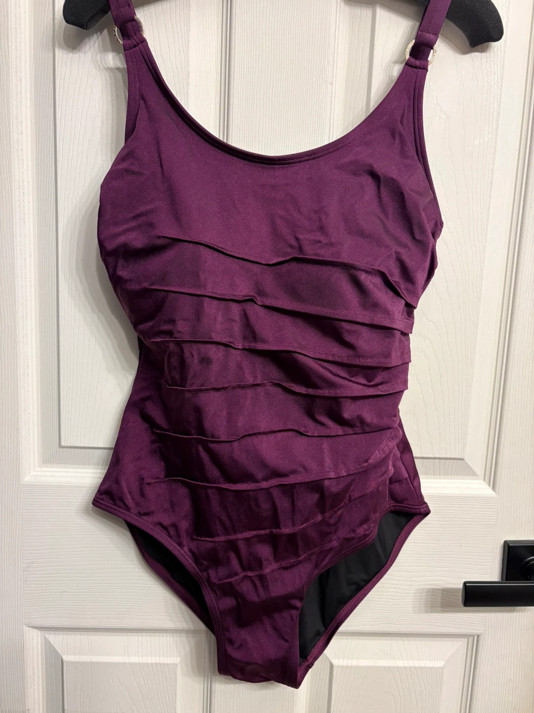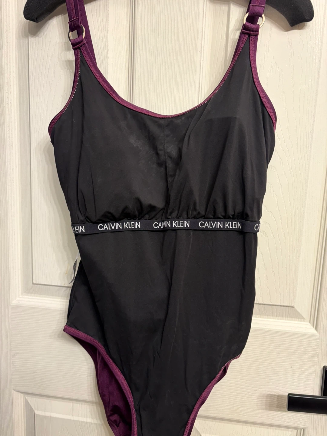 This Calvin Klein one-piece swimsuit features a flattering ruched front with ruffle detailing. It has adjustable straps and a classic silhouette. Perfect for your next beach or pool day! In great like new condition. Beautiful and elegant design. Pick up in Chestermere.