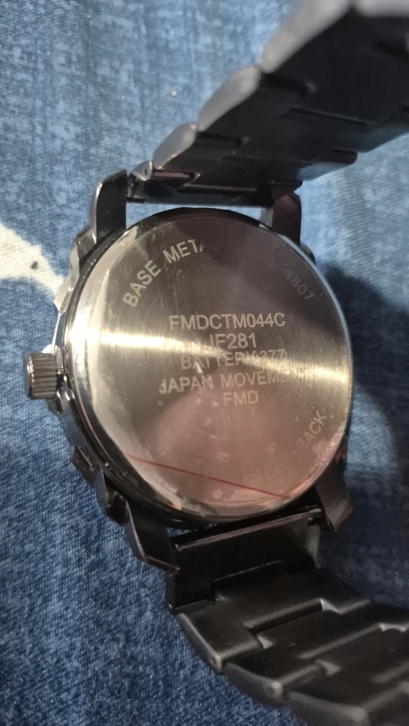 This FMD watch features a Japan movement and a stainless steel back. It's a durable timepiece for everyday wear.