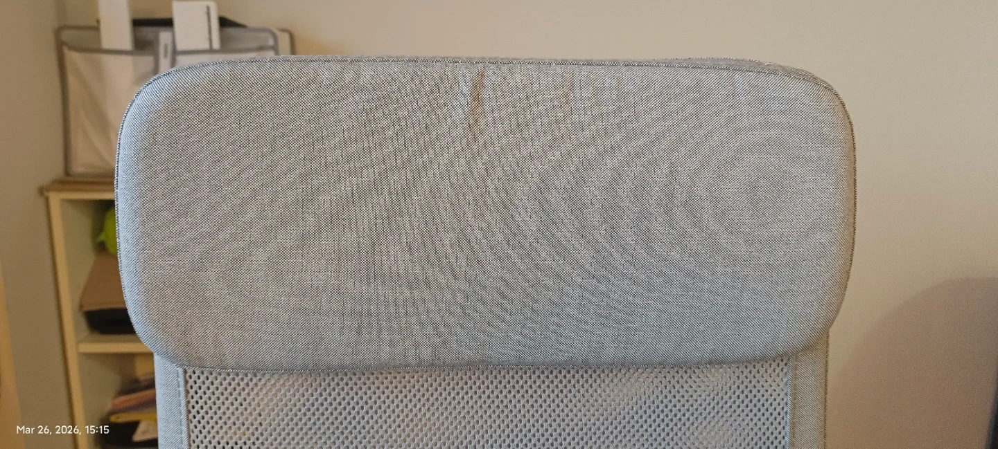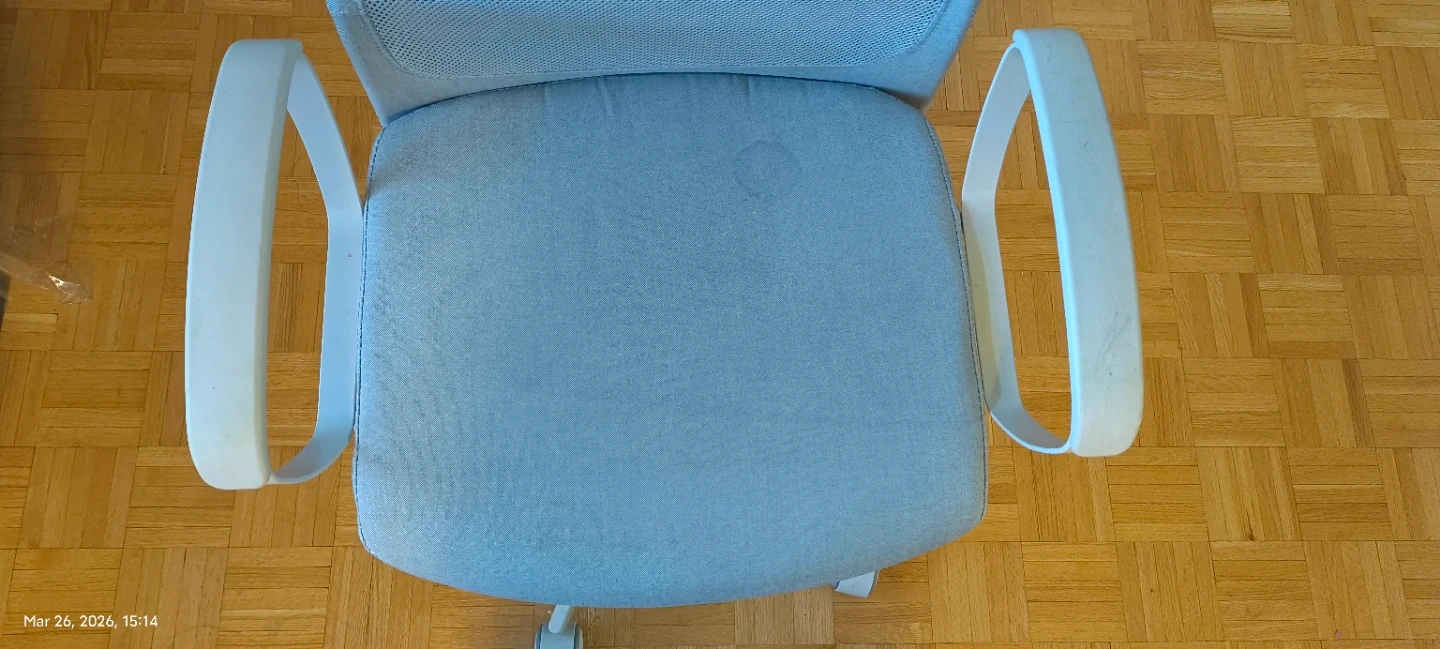 Ikea Markus chair. I didn't use it that much, so the cushion is still fluffy, but it has colours and doodle stains on the armrests, and a small stain on the seat.