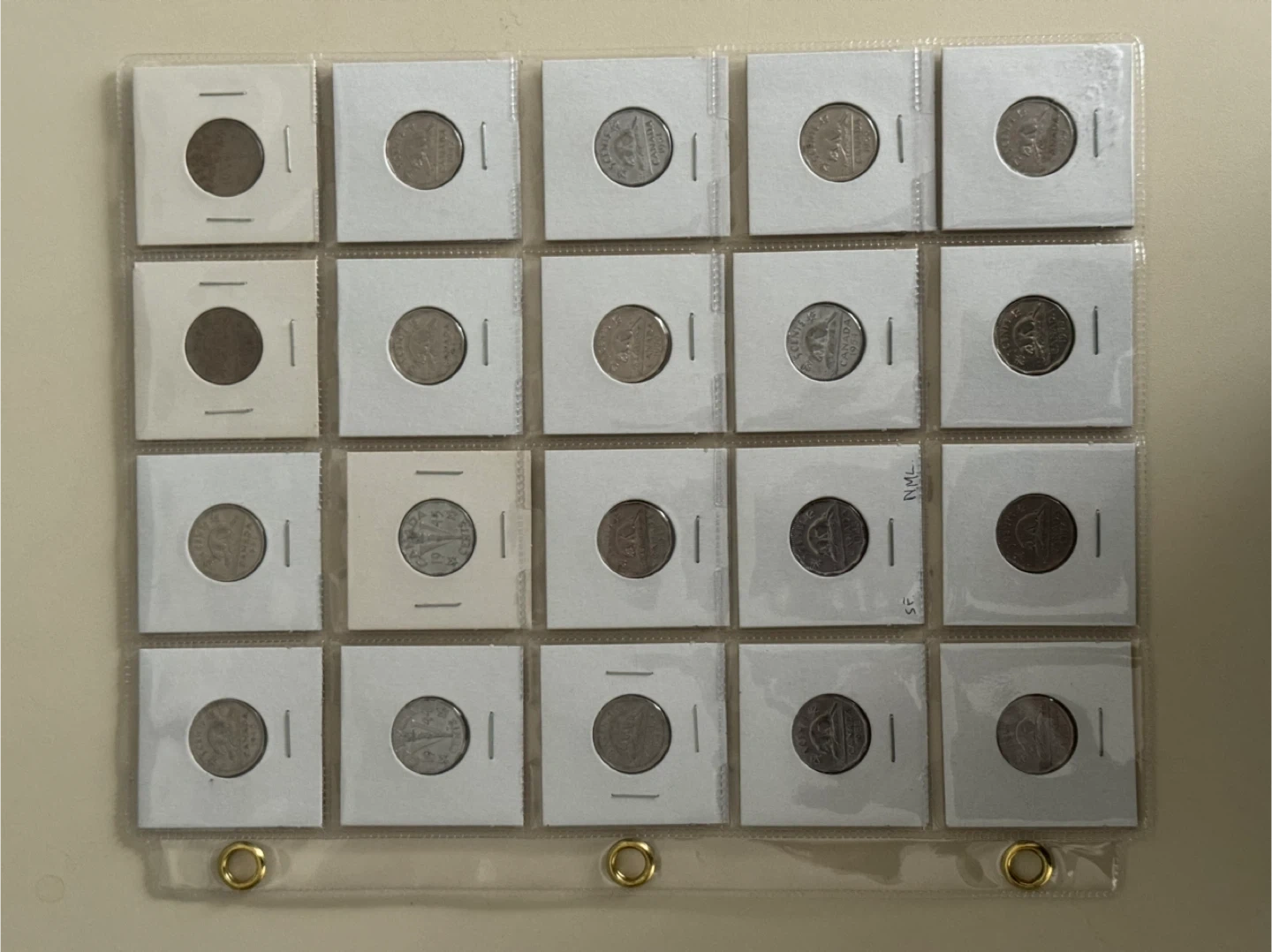 Sleeve of 20 1940-1959 Canadian Nickels