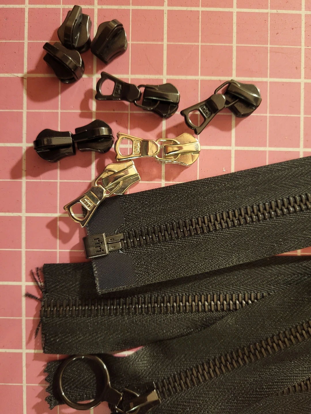 I have buckles , regular zippers and high end riri zippers, snaps, grommets, rivets, leather for straps. If you need one or need something fixed. Message me 😊