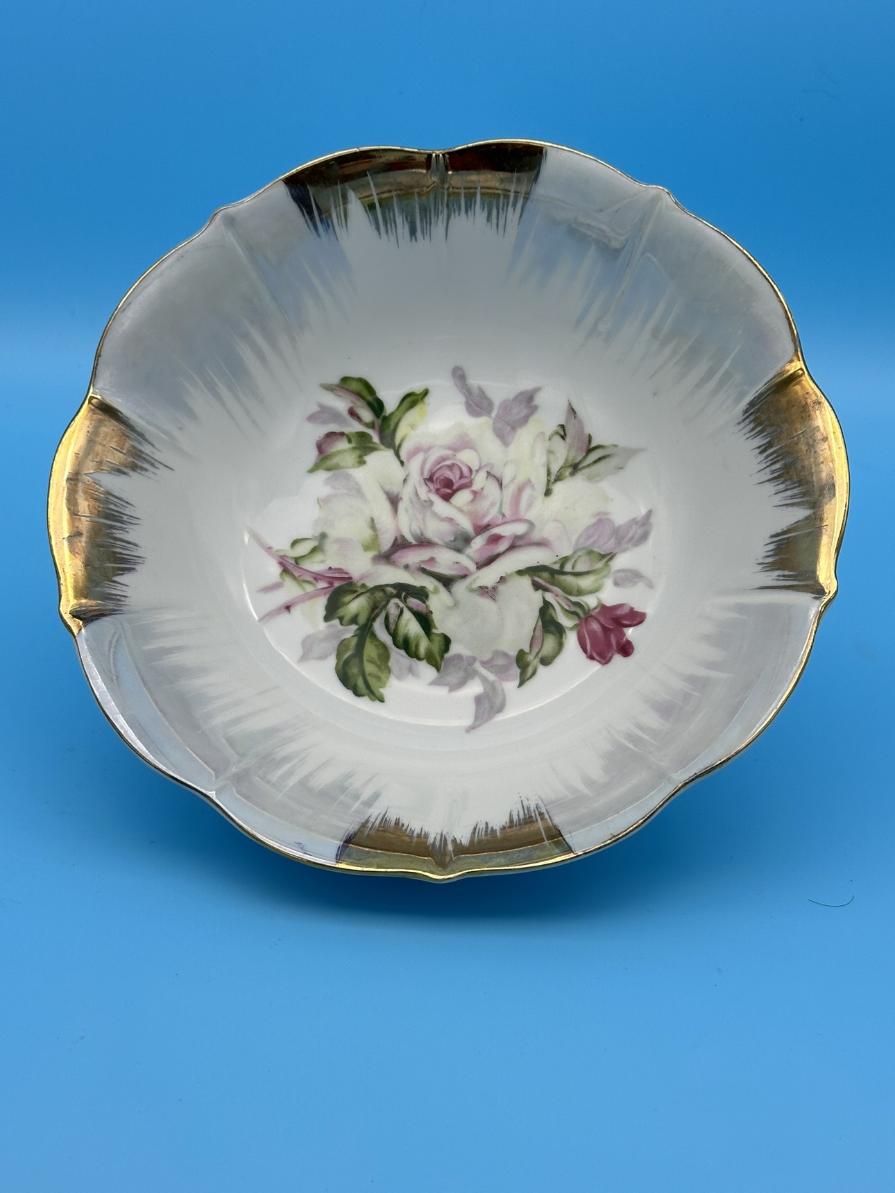 Vintage Made in Japan Fruit Bowl with Rose and Gold