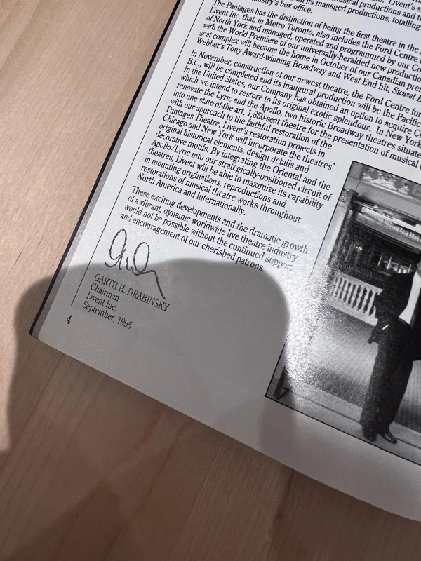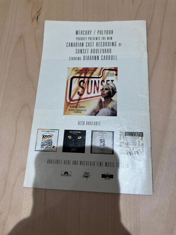 A classic piece of Broadway musical history from the long-running Toronto production. Includes production notes, cast and creative credits, photography, and essays from the era-perfect for collectors of musical theatre memorabilia or Phantom fans.