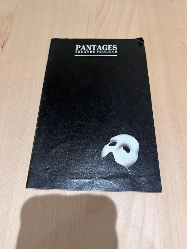 Phantom of the Opera program, Phantom Toronto 1995, theatre program collectible, Andrew Lloyd Webber musical, Pantages Theatre Toronto, Broadway musical memorabilia, vintage theatre program, musical theatre collectible, Phantom mask program, Toronto theatre history"