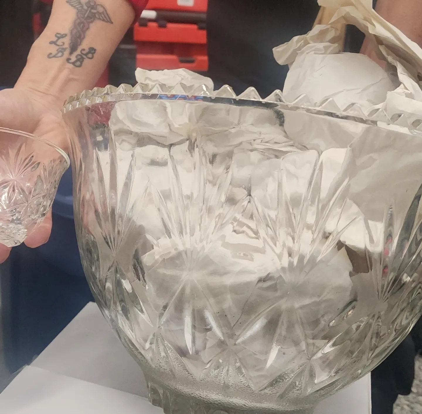 Crystal Punch Bowl with Ladle and Cups