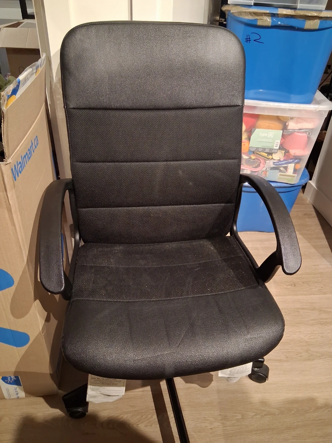 Selling a black office chair in good condition. It's perfect for a home office or study space. The chair is comfortable and provides good support for long hours of work or gaming