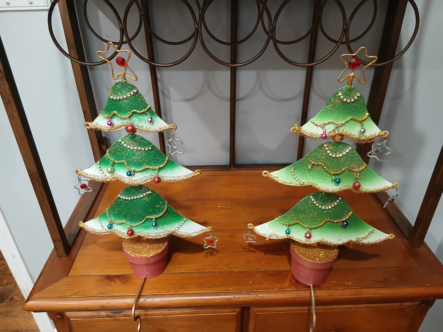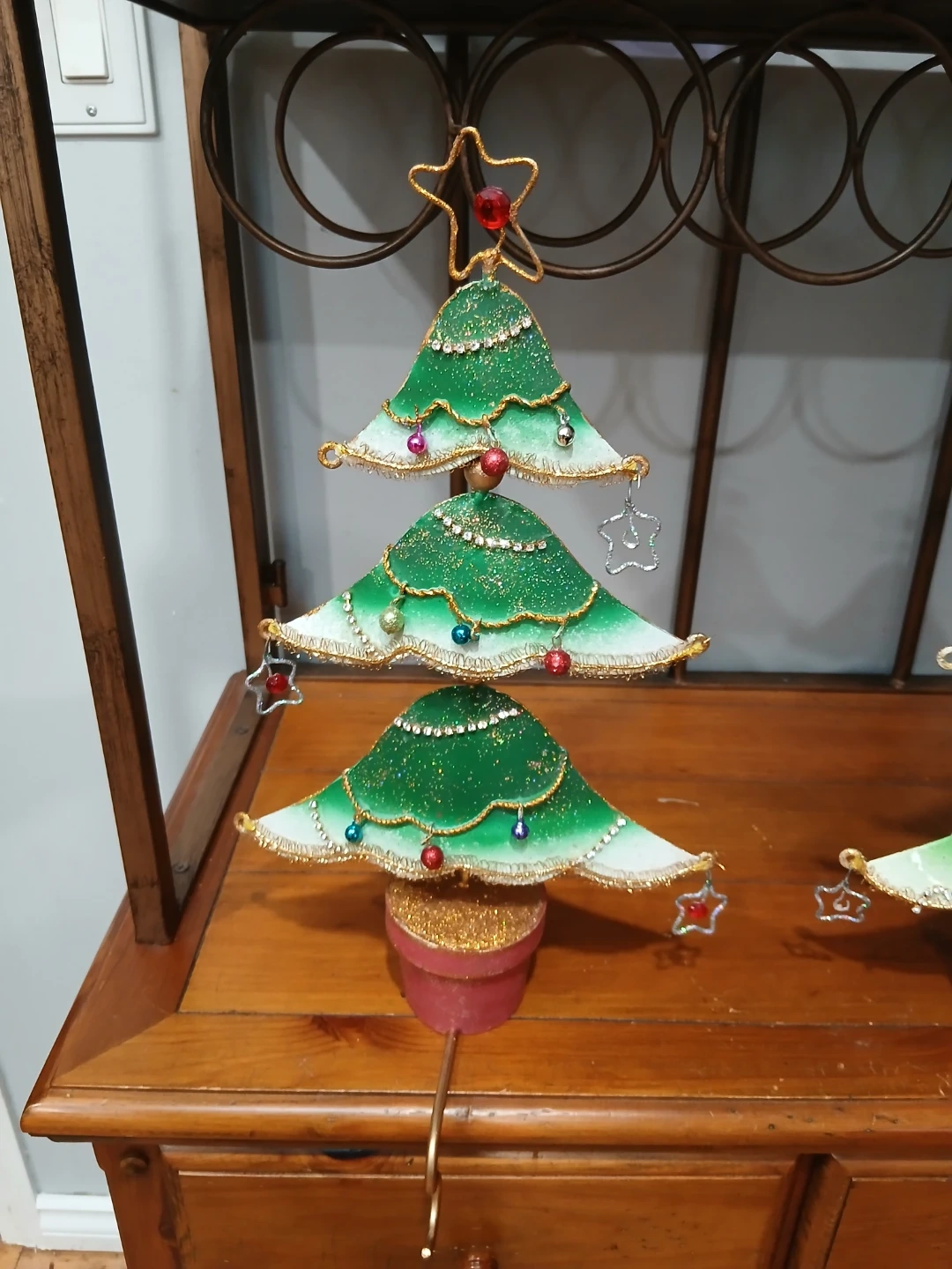 Vintage Bombay CompanyThese adorable Christmas tree stocking holders are perfect for adding a touch of festive charm to your holiday decor! They are in great condition and ready to hold your favourite Christmas stockings. They would look great on a mantle or shelf! Reg wear