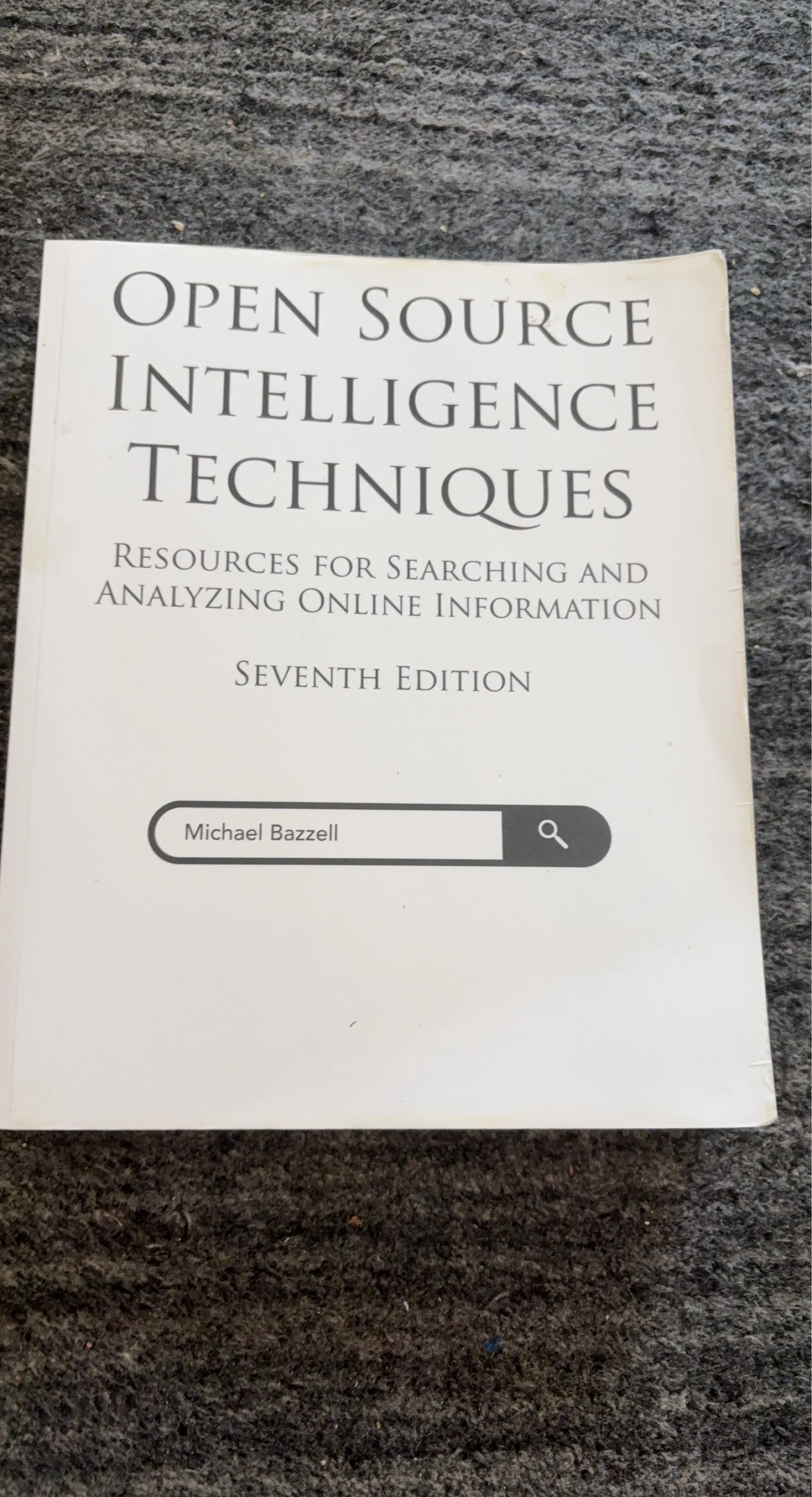 Book on Open Source Intelligence Techniques. Resources for searching and analyzing online information. Written by Michael Bazzell. Seventh Edition.