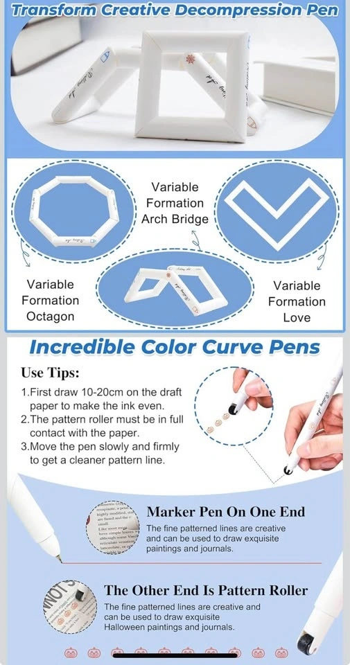 8 Curve Shapes & 6 Color Lines. Decompression double tip fidget pens, deformation assembly pen, for DIY painting, holiday art cards, writing, journaling. Pick up near Coxwell and Danforth.