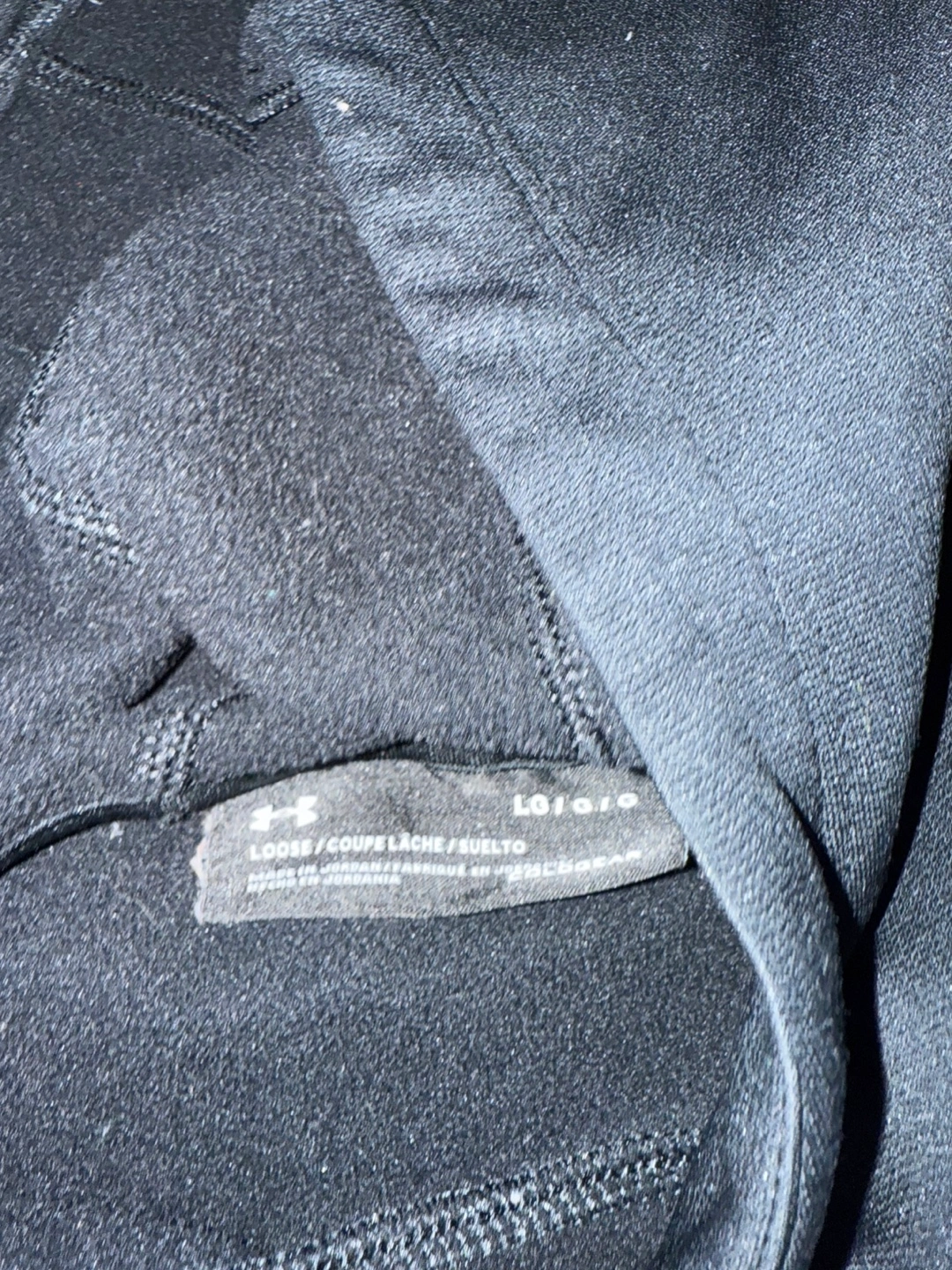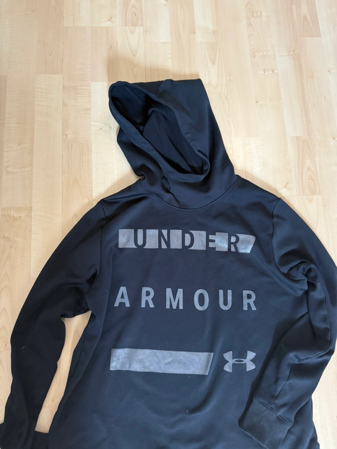 A black hoodie featuring the Under Armour logo. Features a hood for added warmth. A great item for those quiet evenings in.