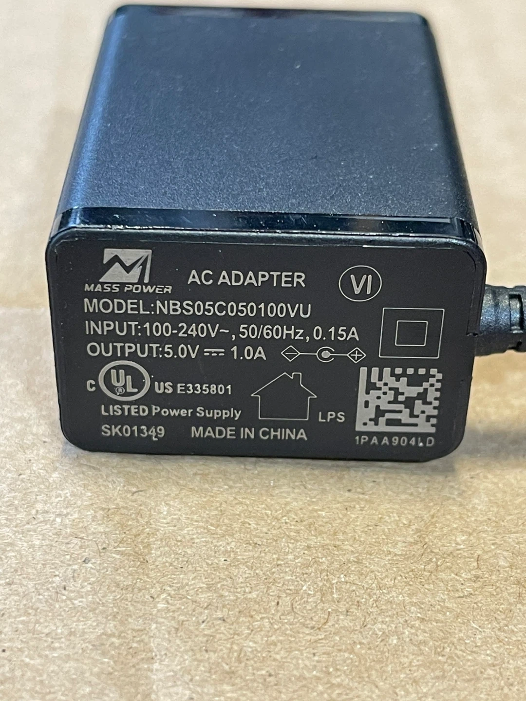 Selling a Mass Power AC Adapter, model NBS05C050100VU. It's in good working condition and ready to power your devices! Input is 100-240V, 50/60Hz, 0.15A, and output is 5.0V, 1.0A