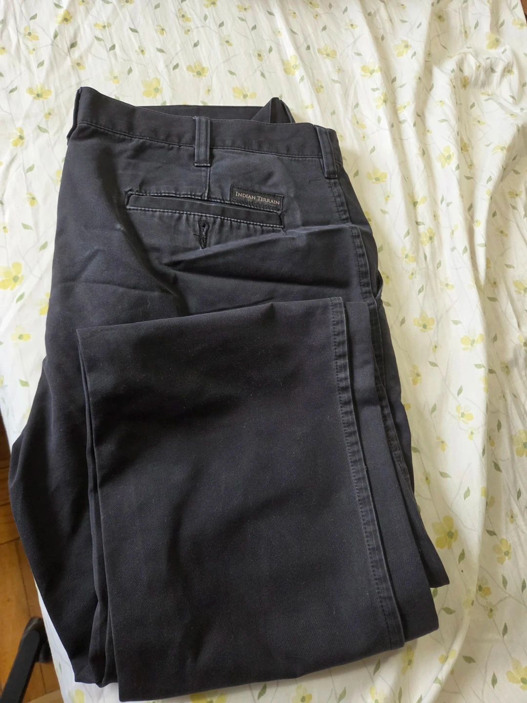 Dark grey chinos from Indian Terrain. These trousers have a classic fit and are made from a comfortable cotton blend. A great staple for any wardrobe, these pants are versatile for casual or semi-formal wear. Size 36 waist.
