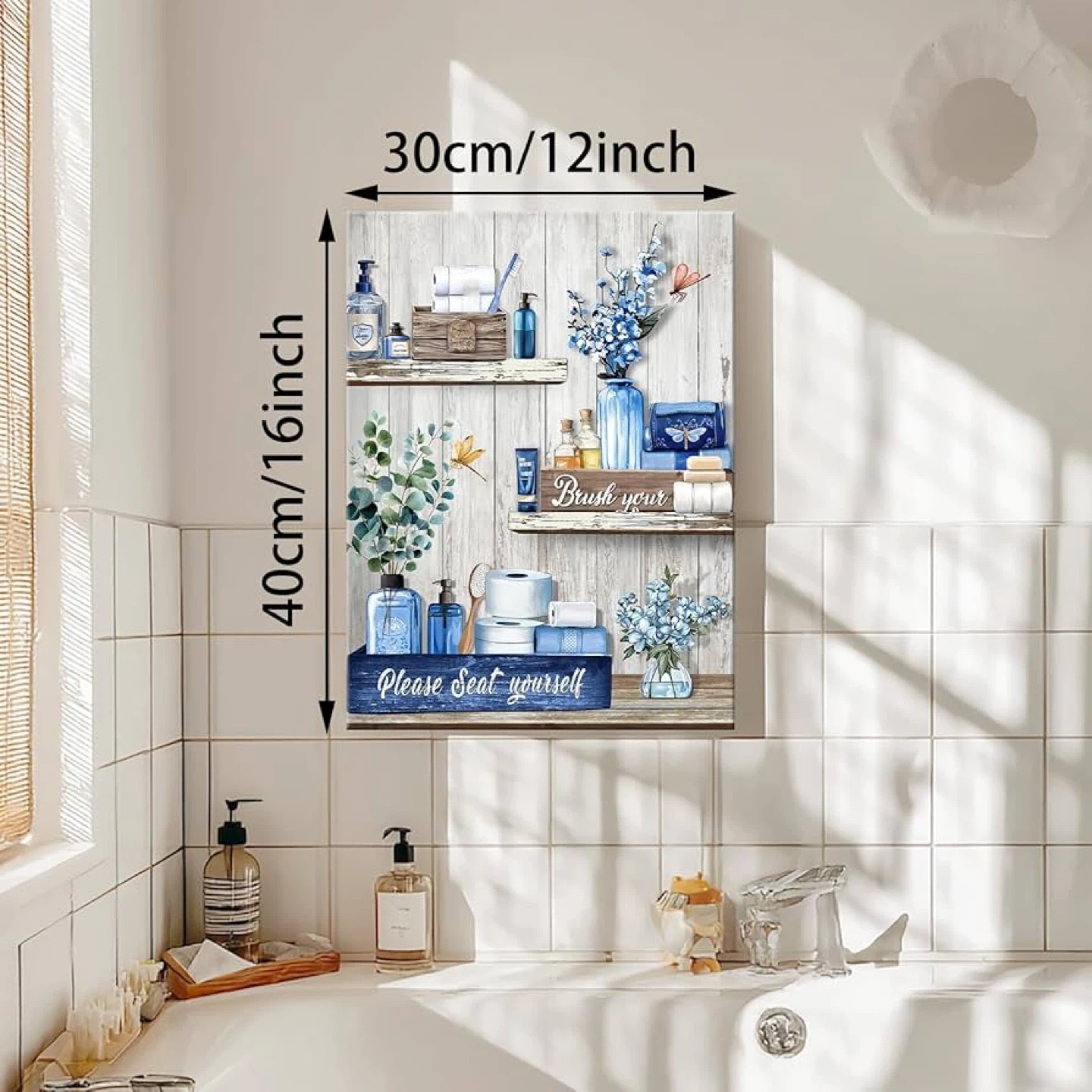 Brand new Navy Blue Shelf Pattern Bathroom Wall Art Rustic Grey Wood Grain Wall Paintings Please Seat Yourself Sign Prints Pictures Vintage Aesthetic Bathroom Poster Artwork Home Decor 12"x16"