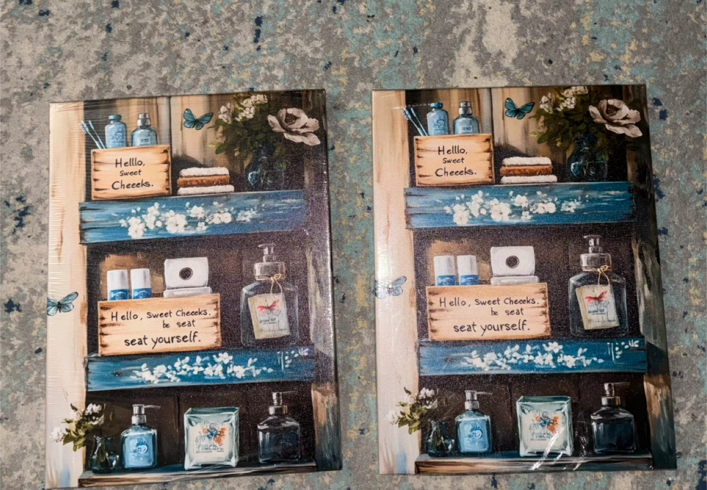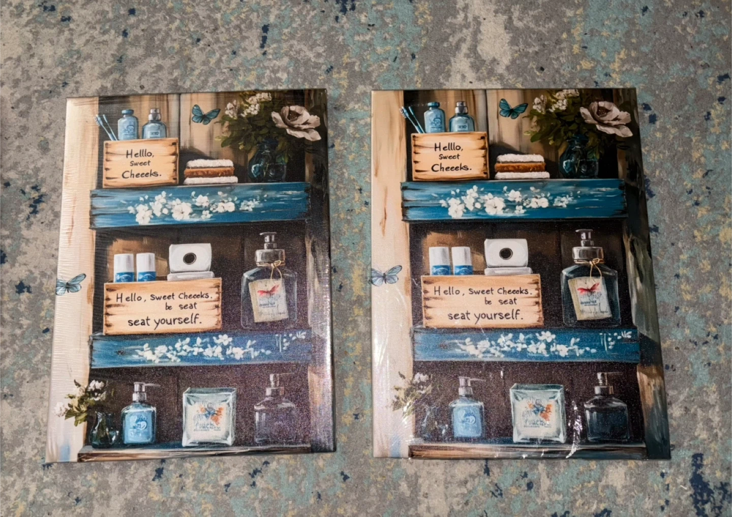 Brand new Navy Blue Shelf Pattern 12"x16" Bathroom Wall Art