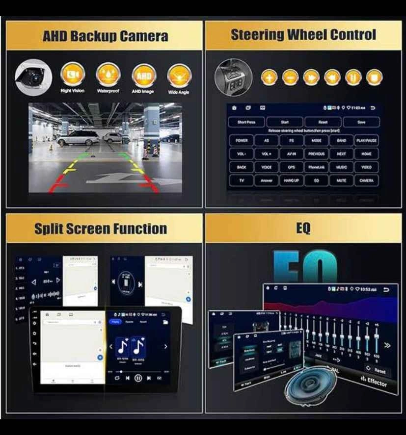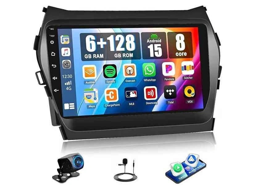 8 Core Android 15 Car Radio with Carplay Stereo Android Auto, 9 Inch Touch Screen, Bluetooth, FM RDS, WiFi, GPS Navi, SWC, and AHD Backup Camera with 360° Panoramic View.