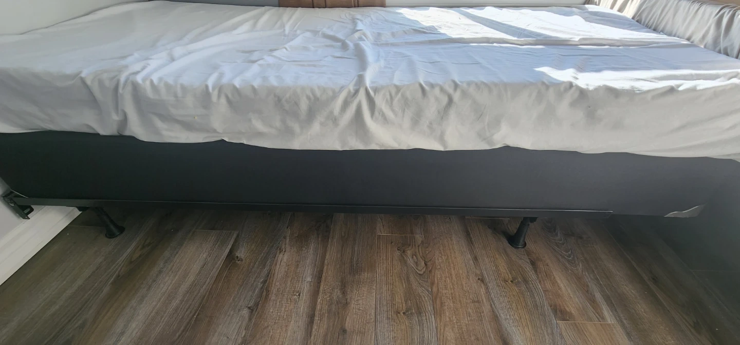 Adjustable sturdy black metal bed frame. It's a solid base for your mattress. Metal construction. Comes with box spring. No mattress.