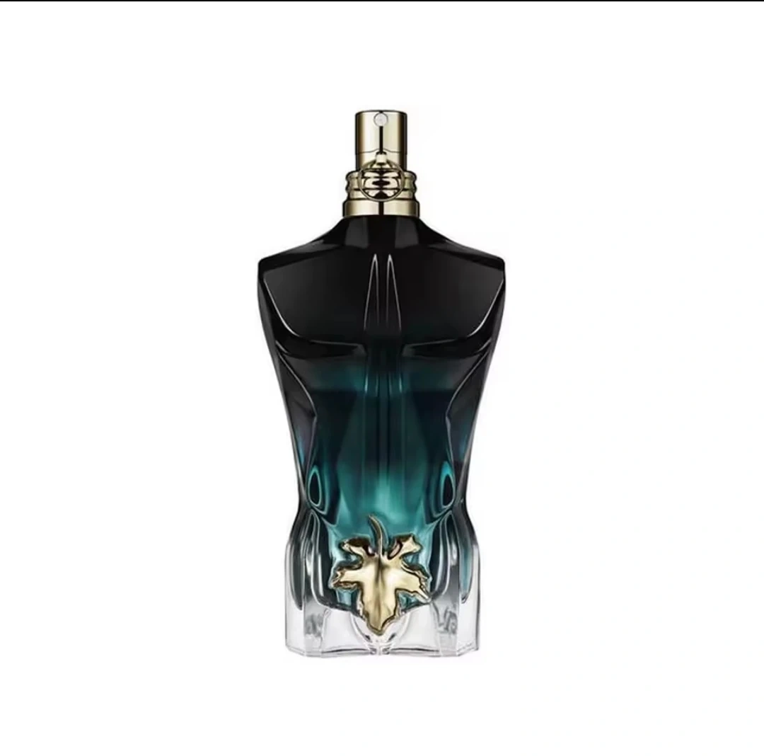 This is a Jean Paul Gaultier Le Beau Le Parfum Eau de Parfum bottle. It's a 125ml size. The unique bottle shape resembles a sculpted male torso with a gold leaf accent. It comes with its original cylindrical packaging.