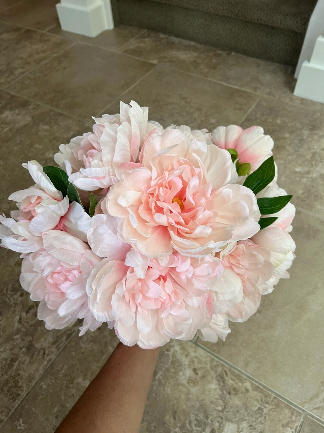 15 Beautiful blush pink artificial peonies. Perfect for weddings, home decor, or crafting. Sold as a bunch, includes multiple stems. Soft and realistic-looking.
