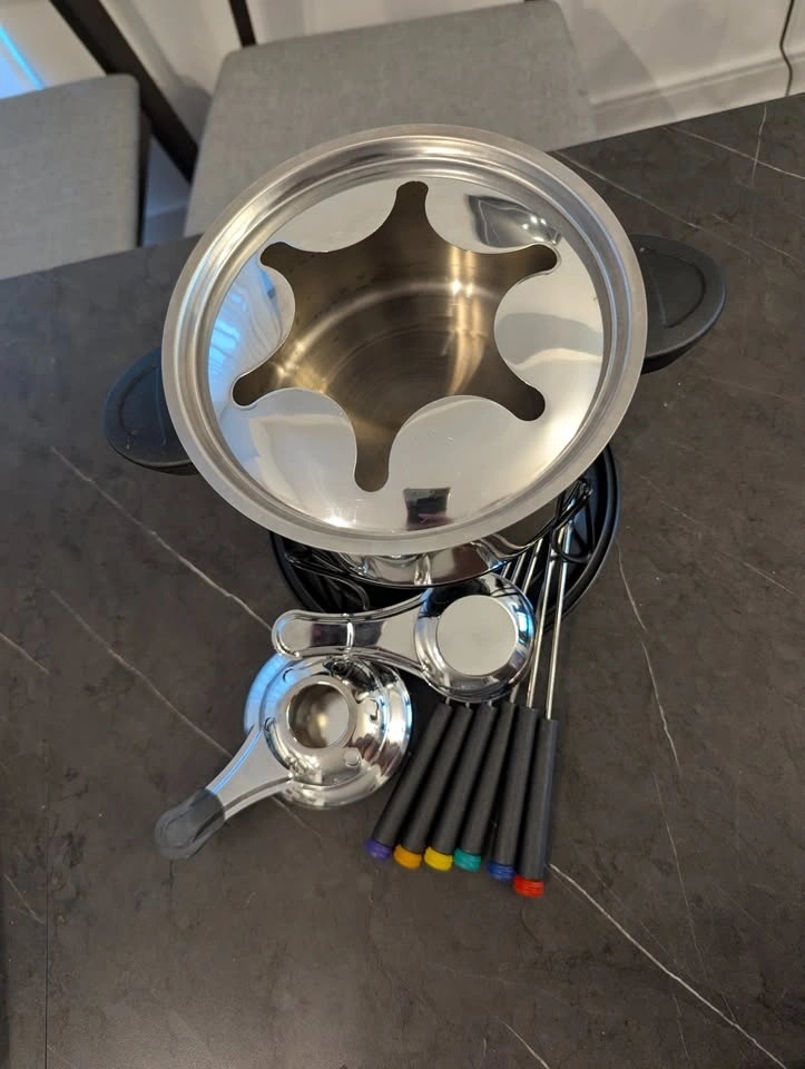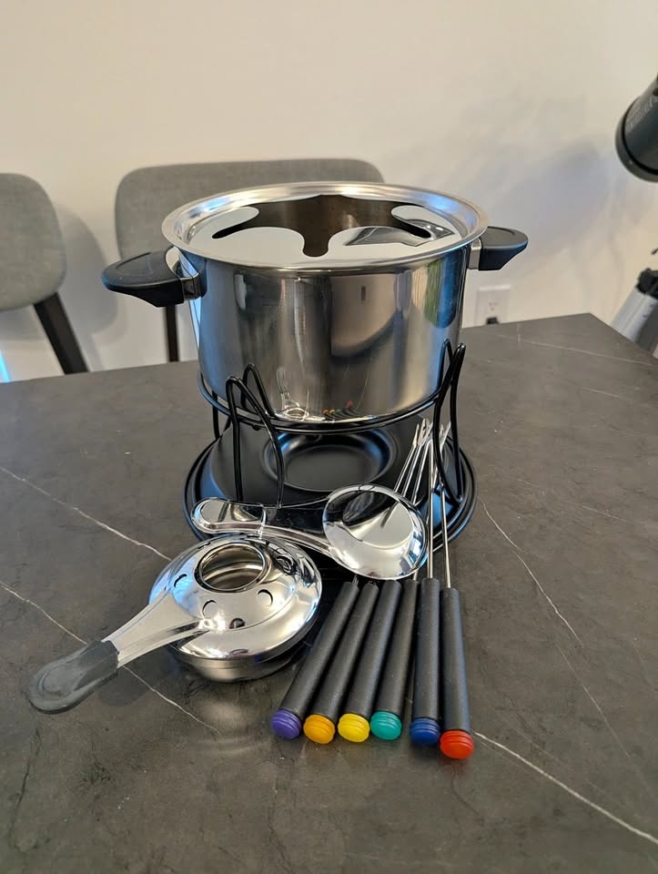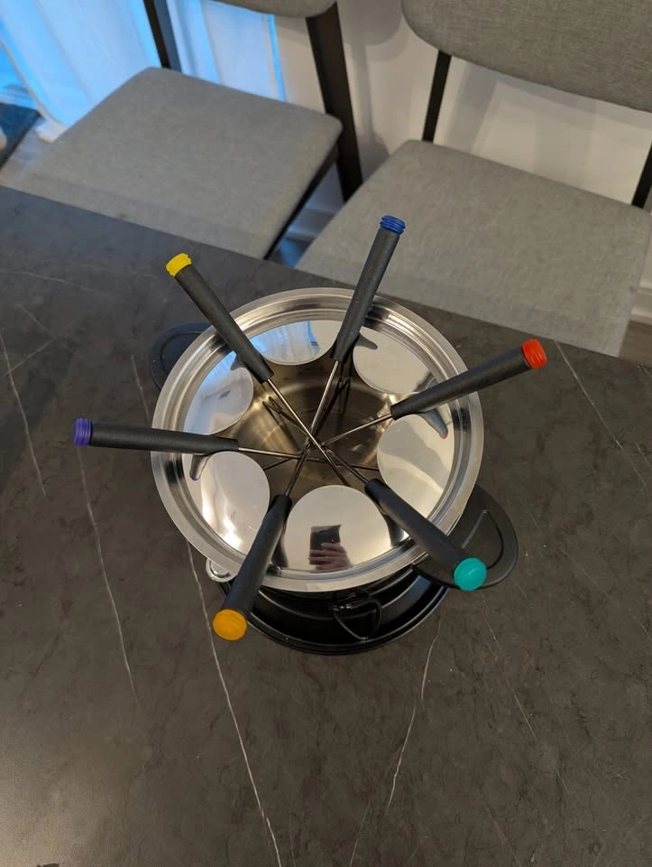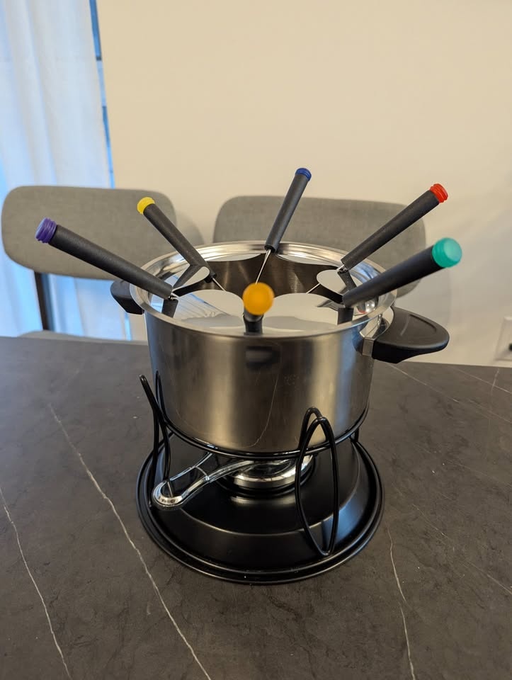 Includes an adjustable safety burner for precise temperature control and x6 colour-coded forks.