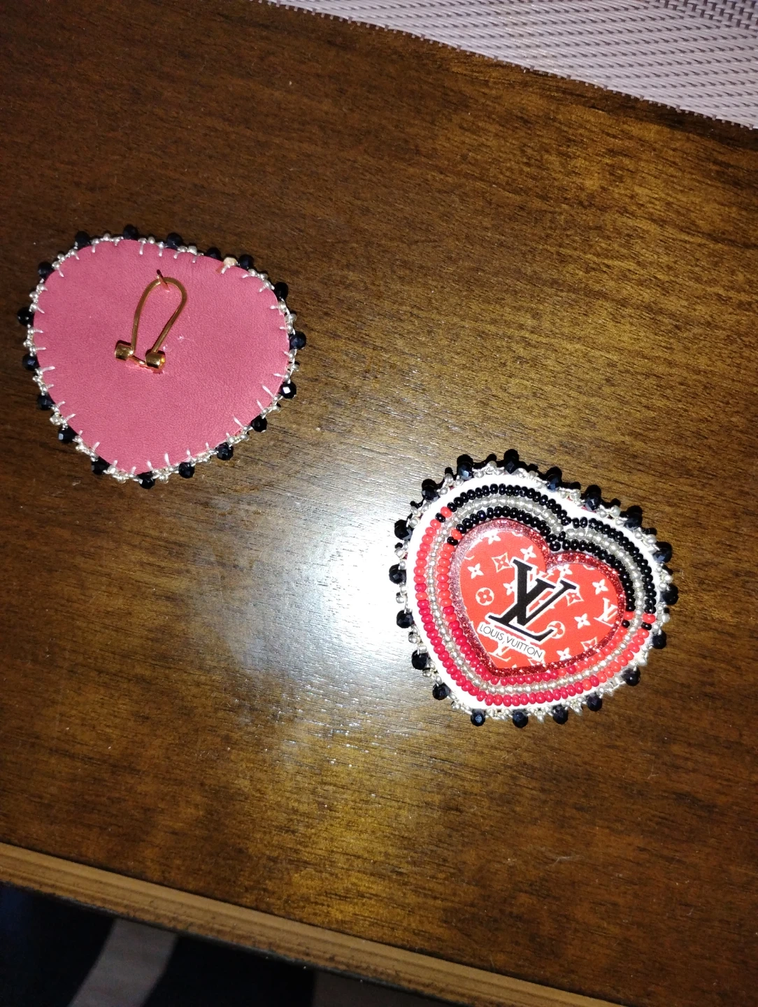 Handmade Heart Beaded Earrings - Louis Vuitton Inspired