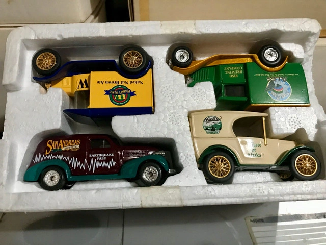 I'm selling a set of Brookstone diecast cars. These collectible models are in great condition and would be a fantastic addition to any collection. These are used, so please be aware that while they are in great condition, they are not new. If you're seeing this ad, the item is still available, so feel free to reach out!